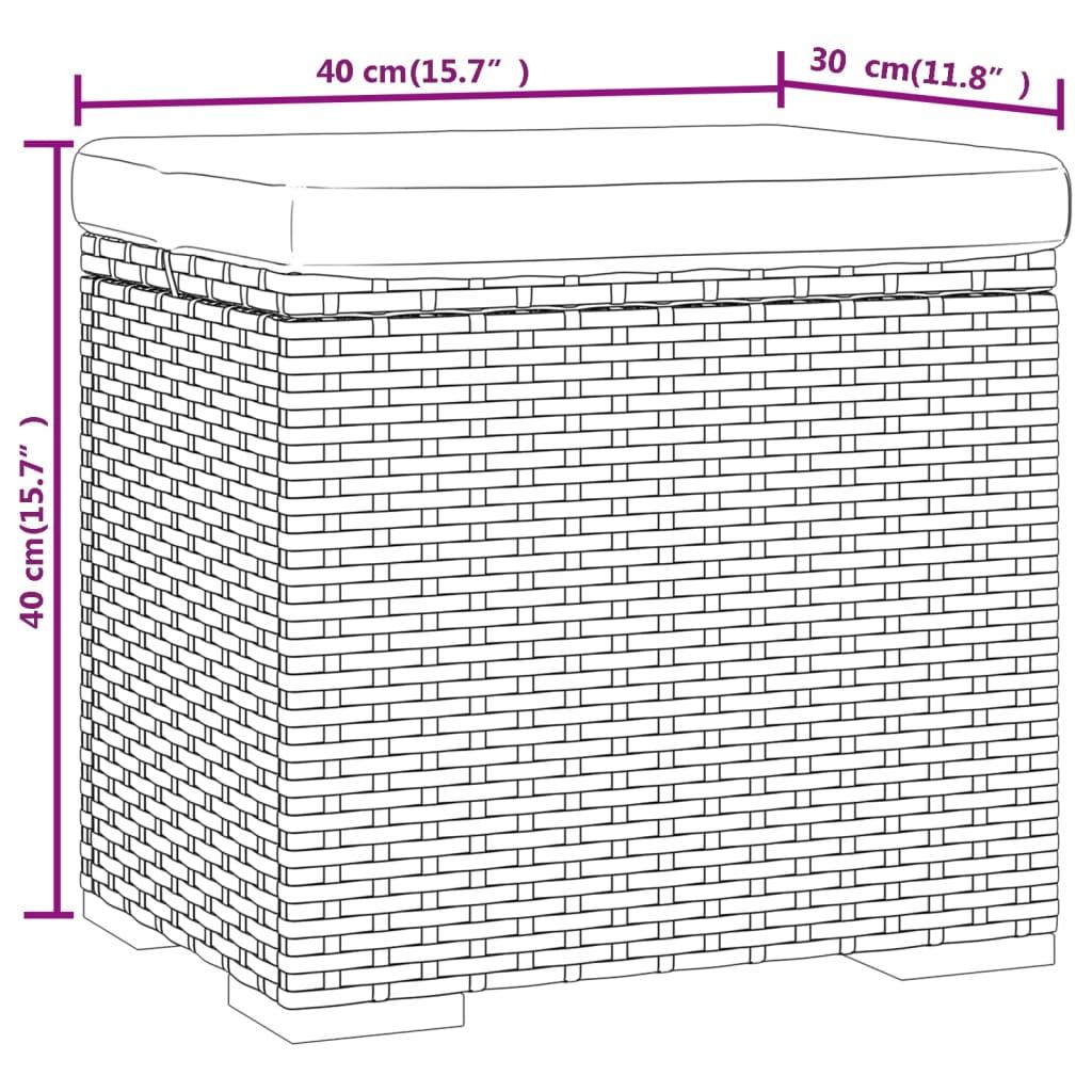 These ottomans are an ideal choice for you to relax, enjoy the weather, take a nap, or have a chat with your family and friends. Durable material: PE rattan, also known as poly rattan, is weather resistant and easy to clean. It remains beautiful on the outside for a long period of time. It offers great quality, convenience and an aesthetic look.Sturdy frame: The powder-coated metal frame of the footrest ensures sturdiness and stability.Soft cushions: Thick, removable cushions of the foot stools are included to provide the utmost seating comfort. Good to know:To make assembly as easy as possible, each product is delivered with a manual. Note:To make sure your outdoor furniture stays beautiful, we recommend protecting it with a waterproof cover.