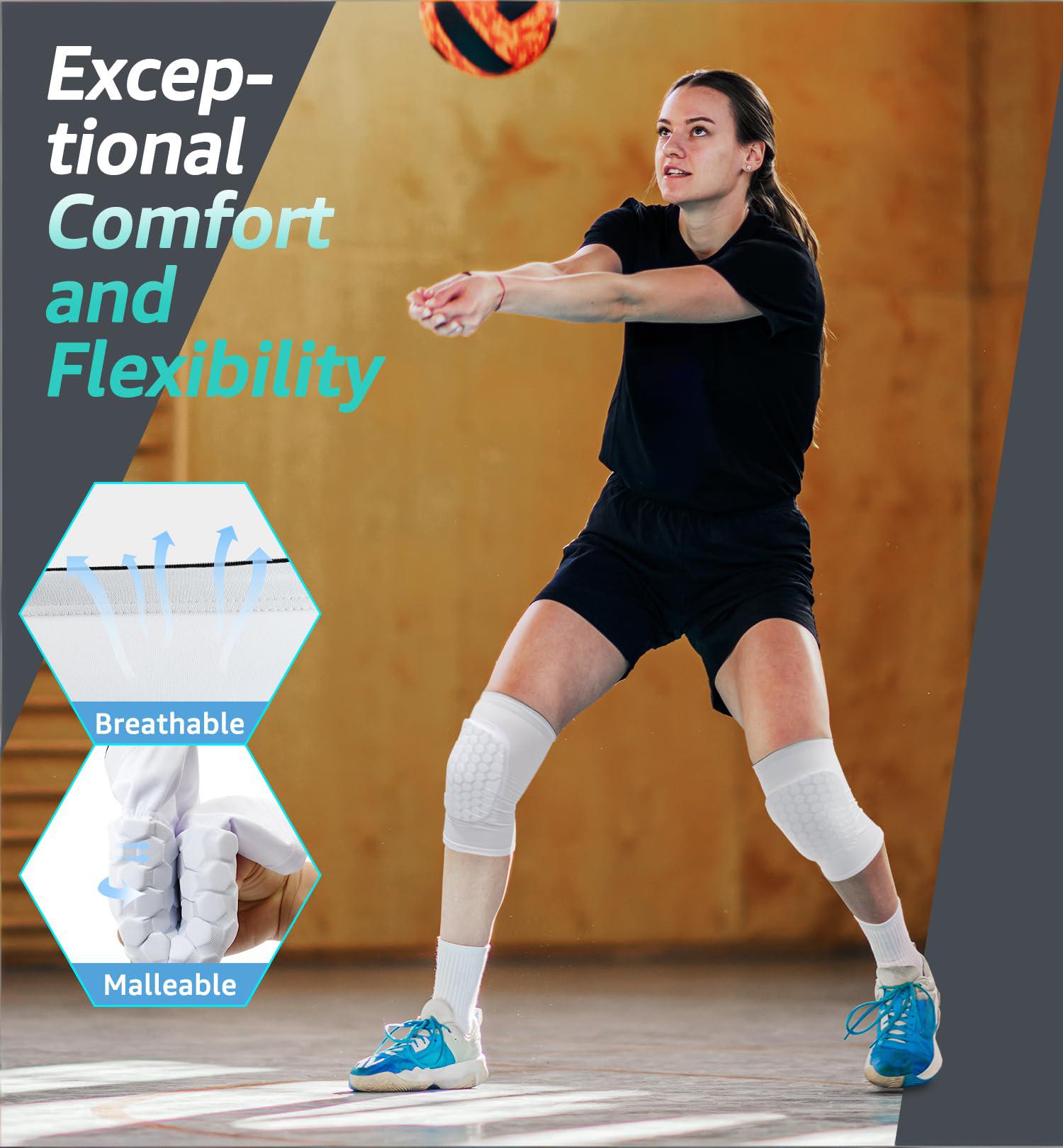 Honeycomb Knee Pads for Kids, Teens Adults Protective Compression Knee Guards for Basketball, Football, Cycling Running (White)