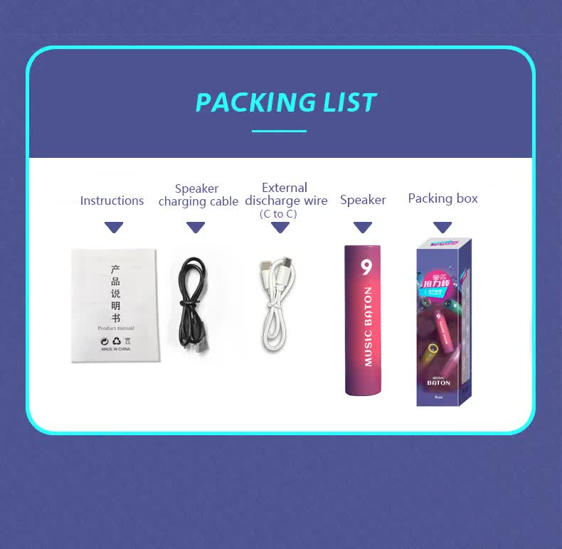 • Package Includes: 1 x Speaker, 1 x Charging Cable, 1 x C-to-C Cable, User Manual