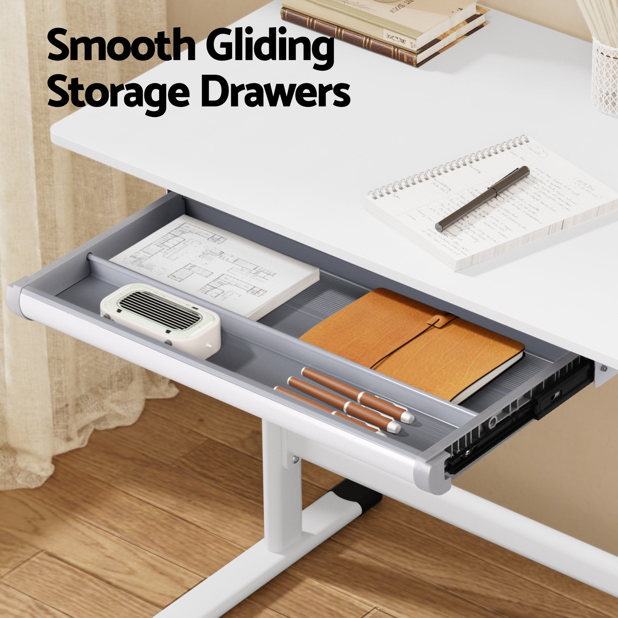 Enjoy a tidy and ergonomic workspace with this Artiss manual standing desk. Designed as a practical study desk or home workstation, it features a simple hand-crank mechanism for smooth height adjustment. The built-in drawer helps keep your essentials organised and within reach. Supported by a sturdy stabilising brace, this adjustable desk offers a stable and reliable surface for your computer and work materials, all in a clean, minimalist design.