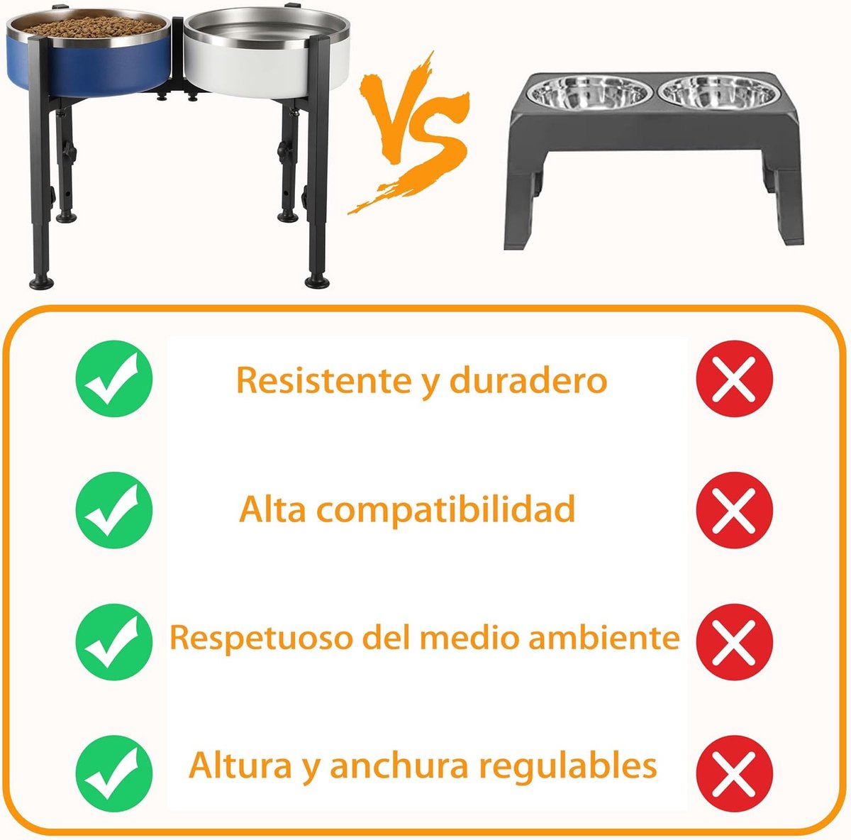 1. Dog Food Bowl: This uniquely designed dog food bowl is made of high-quality metal, making it sturdy and durable with a rust-resistant coating. The double-plate stand provides stability and makes it easy for your pet to eat and drink. 2. Dog Food Bowl: The height and width of the stand are adjustable, ranging from 26.5-35 cm high and 36-55 cm wide. The width of the double plates is also individually adjustable, ranging from 18-27 cm, allowing you to tailor the stand to your dog's specific needs. This promotes digestion and weight management and reduces pressure on the neck and joints. 3. Elevated Dog Food Bowl: This elevated dog food bowl is easy to clean and disinfect, making it a hygienic choice for your pet's feeding area. Both the bowl and the stand are removable for easy cleaning. 4. Elevated Dog Food Bowl: This dog food bowl stand is easy to assemble and takes only three minutes. We include suction cups to ensure the stand is stable and prevents scratches on the floor. The suction cup ensures the stand is securely in place and won't wobble. Safe for both indoor and outdoor use. 5. Tall Dog Bowl Stand: This tall dog bowl stand is perfect for large dogs or pets with arthritis, allowing them to eat comfortably without bending over or straining their necks. Show more