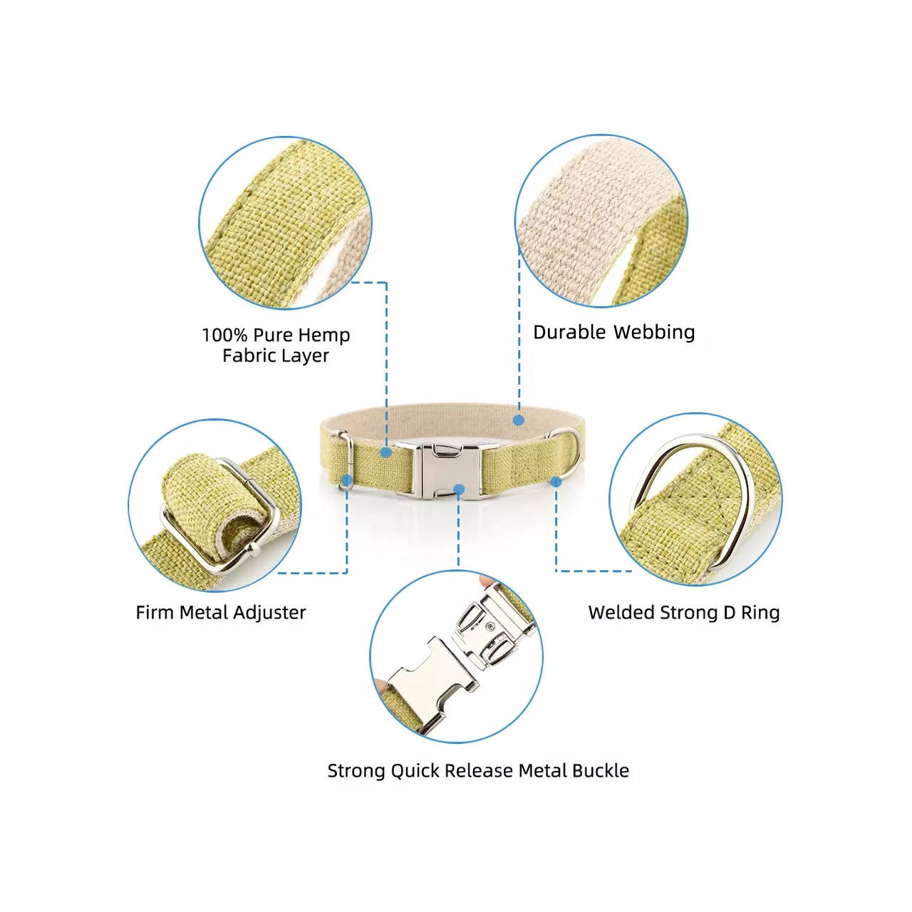 These natural hemp collars are premium quality, ultra stylish and won't cost the earth! Made with all natural fibres of organic hemp and cotton webbing, no pesticides or nylon is used and all fittings are metal. Hemp is a very strong fibre and superior to other fabrics. It's breathable, non irritating and recommended for dogs with sensitive skin or skin issues.