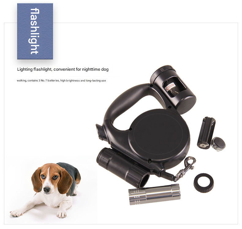 • 3-in-1 Multifunctional Design: This leash integrates a retractable lead, a bright LED flashlight, and a convenient pet waste bag dispenser. Say goodbye to juggling multiple items and enjoy streamlined walks.