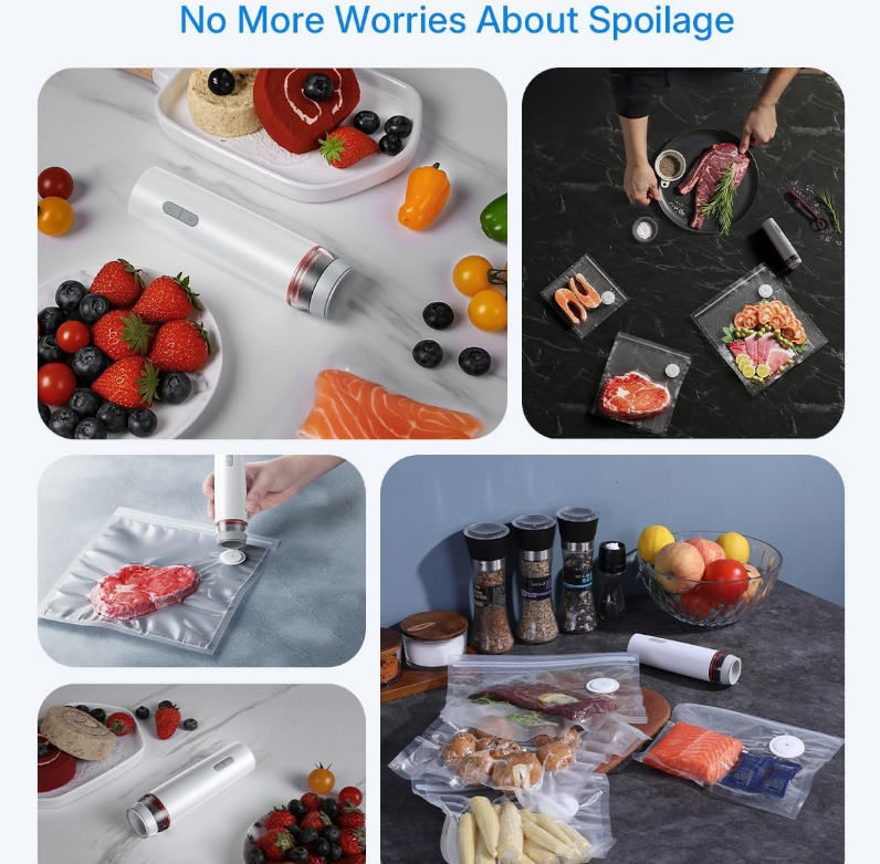 Extend the shelf life of your groceries and reduce food waste with this Portable Handheld Vacuum Sealer. Designed for the modern Australian kitchen, this compact wireless device allows you to seal fresh meat, fruits, and vegetables in seconds. Its lightweight, cordless design also makes it an essential companion for camping trips, caravans, and outdoor BBQs, ensuring your food stays fresh up to 5 times longer than traditional storage methods.