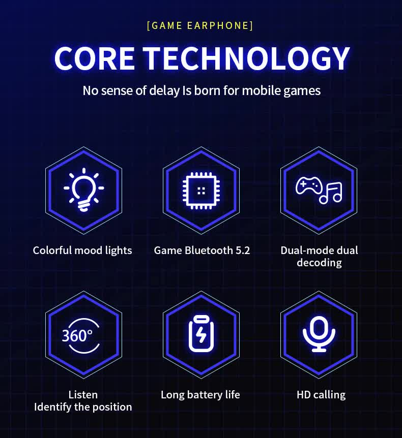 • Bluetooth 5.2 Technology: Provides a stable and reliable connection with ultra-low latency, minimizing audio delay for seamless gameplay across all devices.