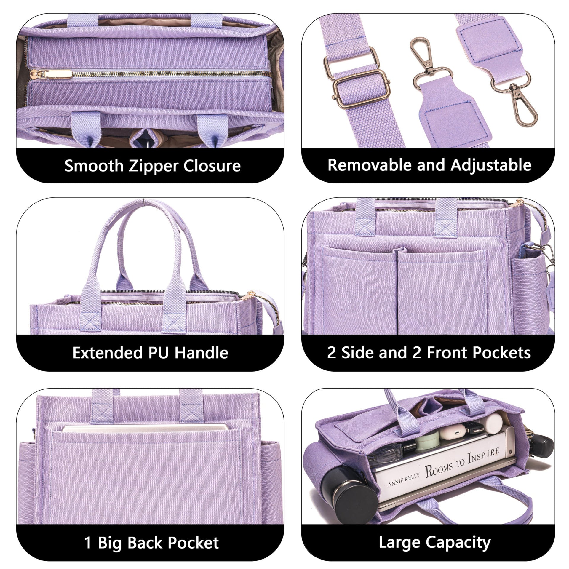Stylish Women's Large Canvas Tote Bag - 15.3in Laptop Mommy Bag with Crossbody Strap