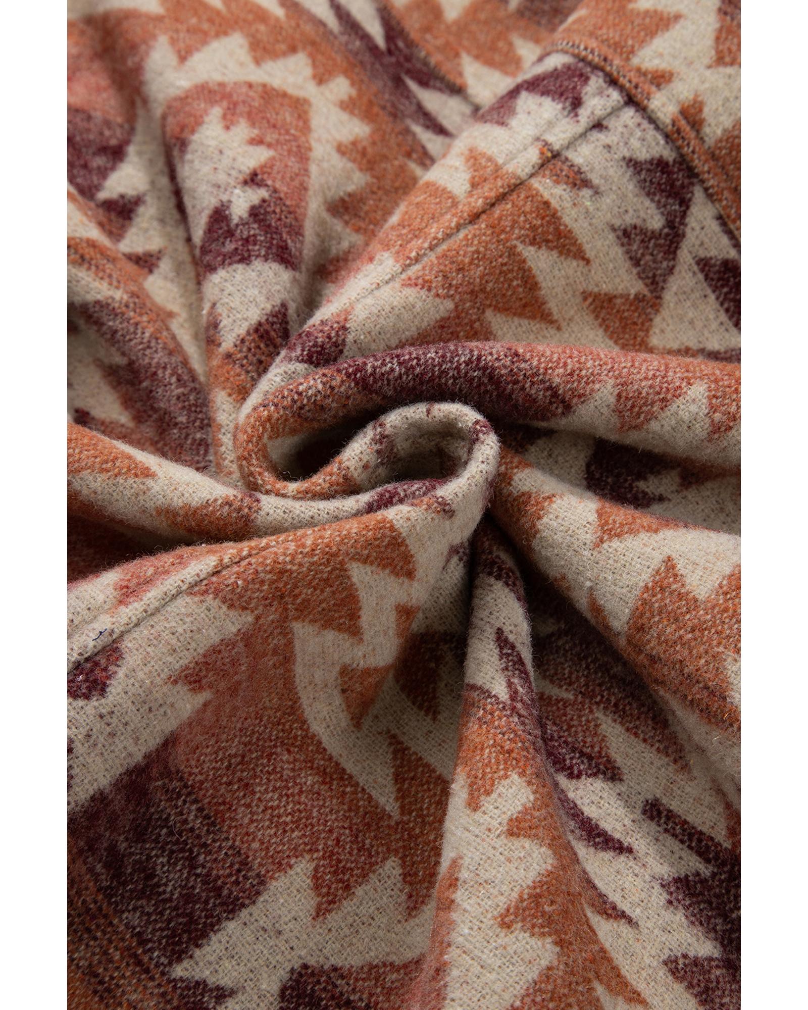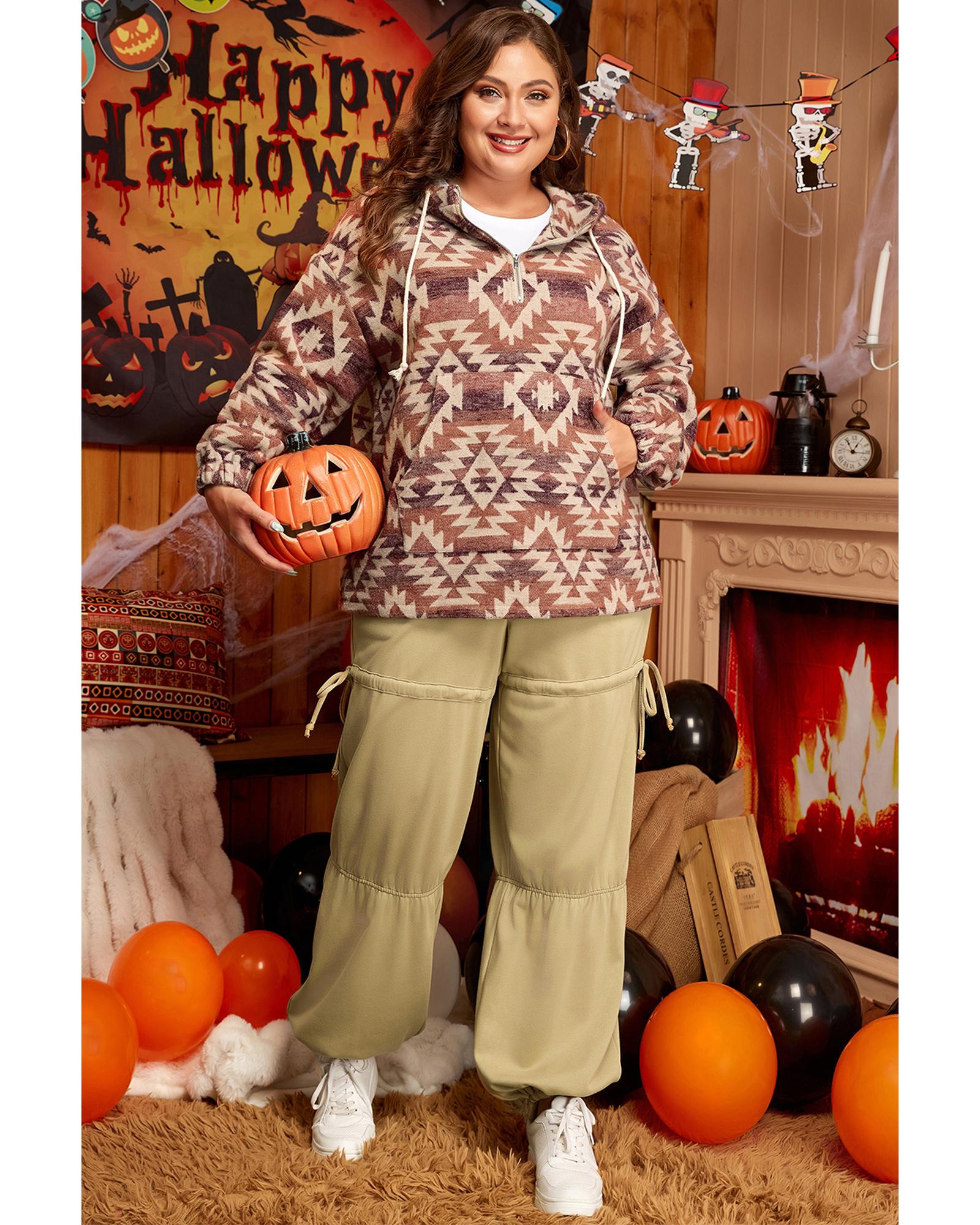 Red Plus Size Western Fashion Aztec Patterned Half Zip High Neck Hoodie - 1X