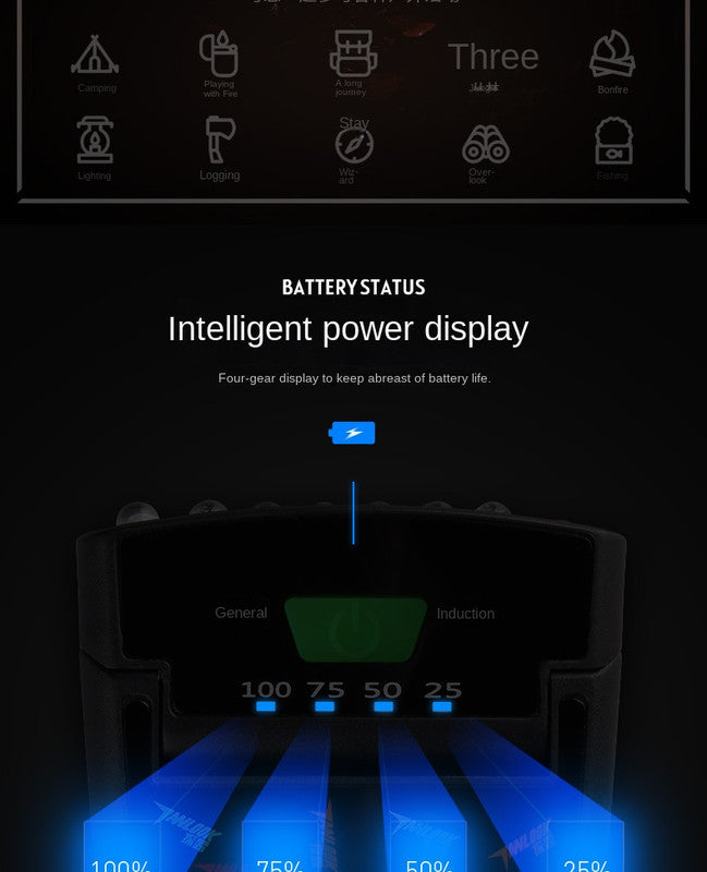 Outdoor sports products Dew detection LED induction headlight, rechargeable strong light for night fishing