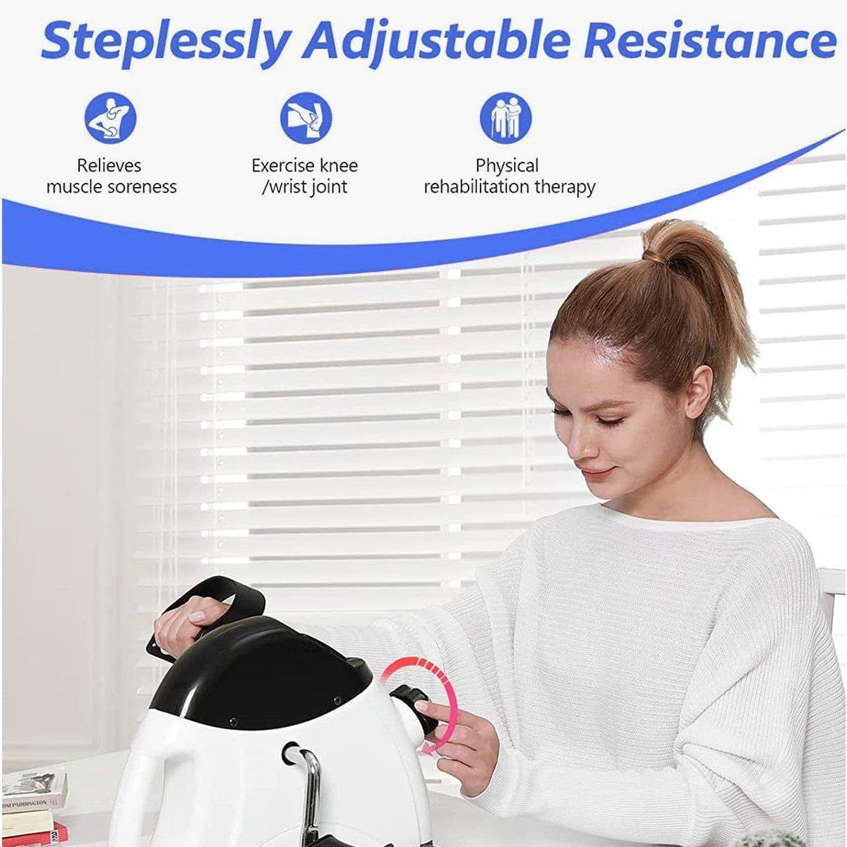 Enhance your fitness routine with our Mini Exercise Bike Pedal Exerciser, designed specifically for seniors and individuals undergoing rehabilitation training. This compact and portable exerciser allows you to engage in a low-impact cardiovascular workout from the comfort of your home. It is perfect for improving circulation, muscle strength, and coordination.