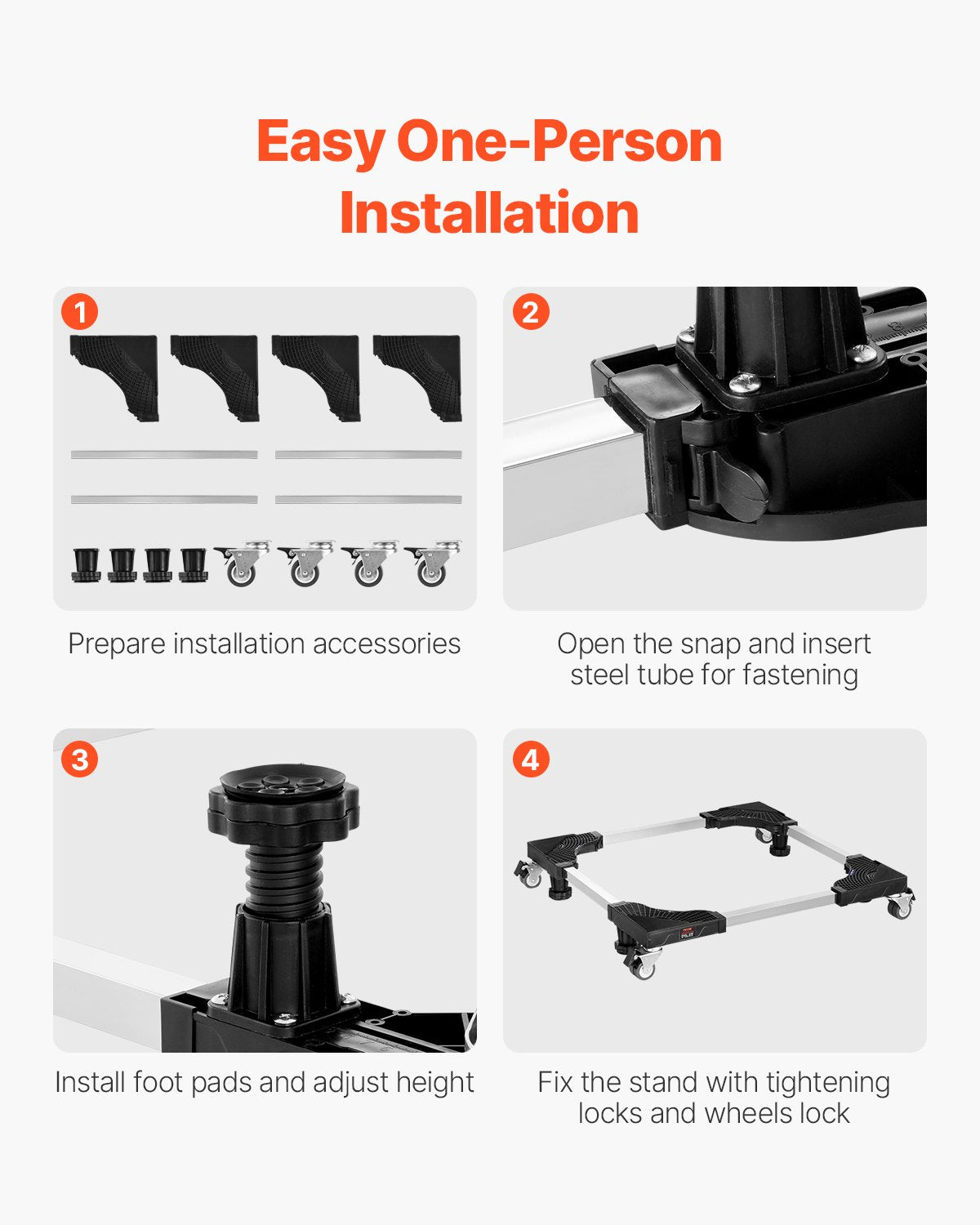 VEVOR Fridge Stand Mobile Base, 1100 lbs Load Capacity, Washing Machine Stand with 8 Locking Twin Wheels and 4 Brakes, 27.5 -35.4 Inches Adjustable Furniture Dolly for Washer, Refrigerator and Dryer