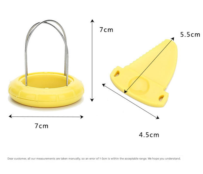 • Stainless Steel Wires: The curved stainless steel wires are designed to fit the contour of the fruit, cleanly separating the flesh from the skin while slicing it into ready-to-eat pieces.