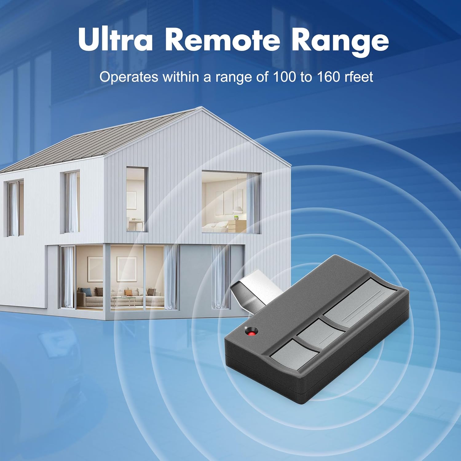 Extended Range: The garage door opener remote ensures "no waiting" roll-in access from a distance of up to 120 feet, offering convenience and flexibility for seamless garage entry