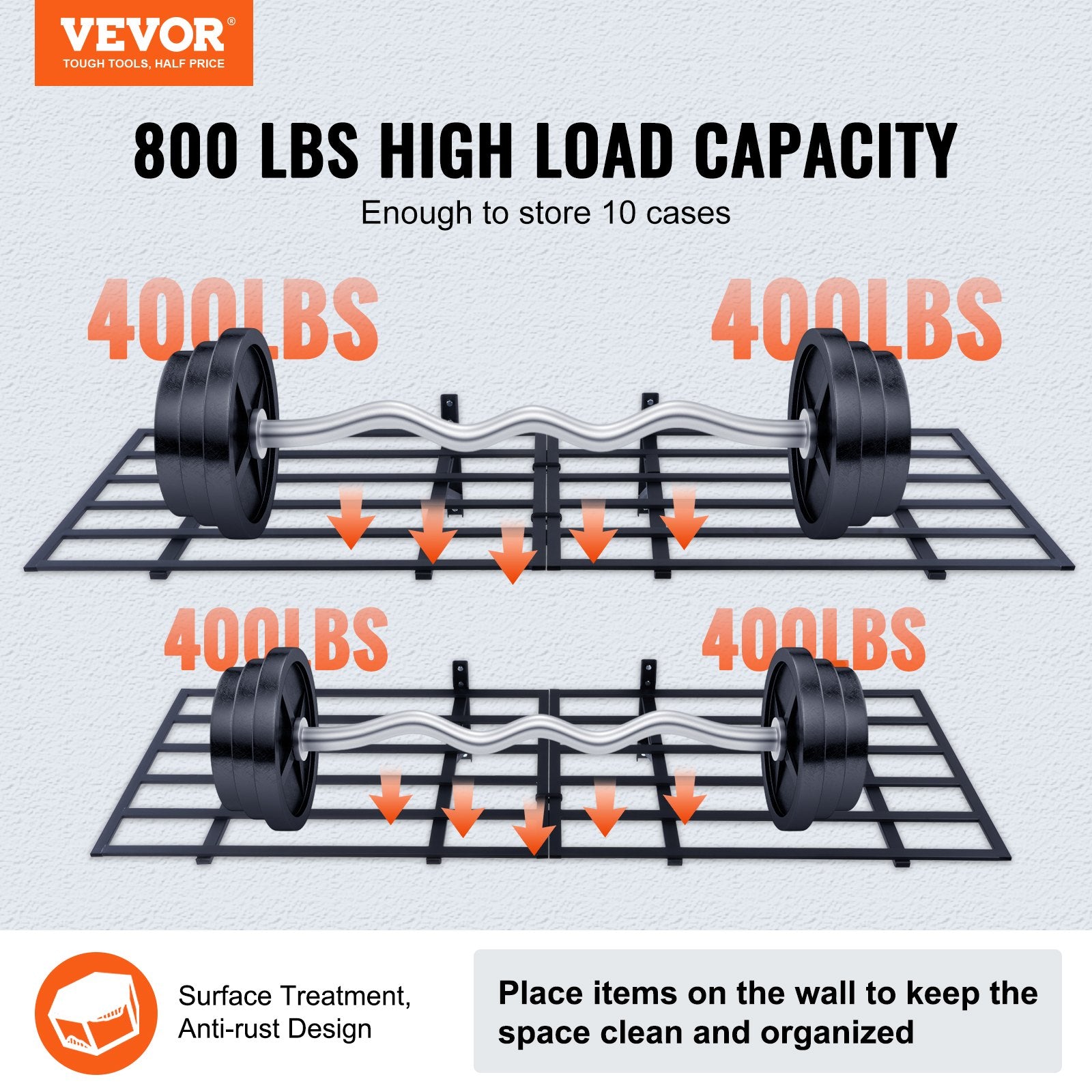 Our garage wall shelving is made of high-quality metal, weighing 40.79 lbs. Each shelf has a maximum load capacity of 800 lbs, making it convenient for hanging tools. Installation Hole Spacing: 18 inches.