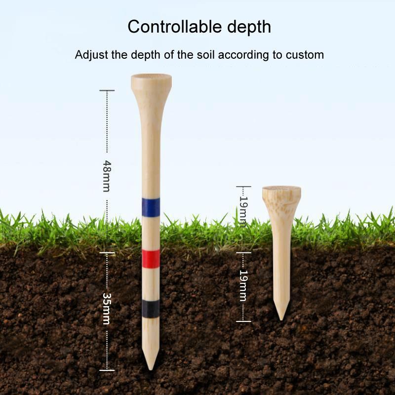 Adjustable Bamboo Golf Spikes - 30pcs / Box - Depth Marker Tee - 83Mm