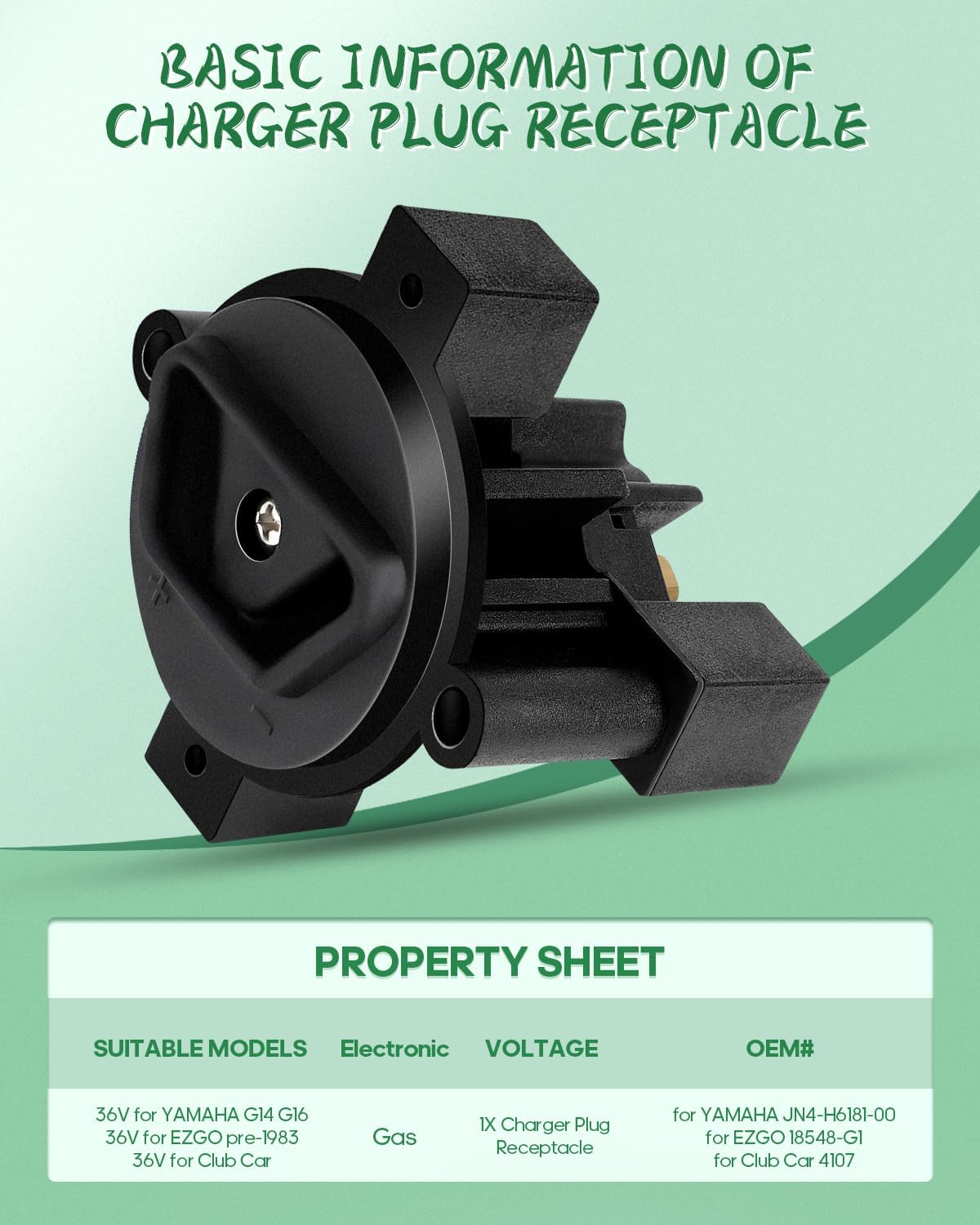 FITS THE FOLLOWING CARTS: Universal 36V Golf Cart Charger Plug Receptacle for EZGO, for Club Car, for Yamaha, for Taylor Dun Golf Cart