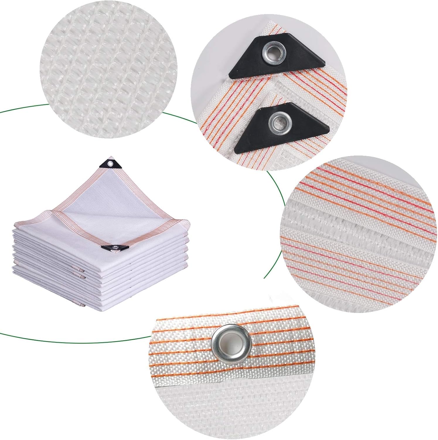 There will be an aluminum grommet every 3.3ft/1.0 meter, which is convenient for your hanging and storage, and you can reuse it.