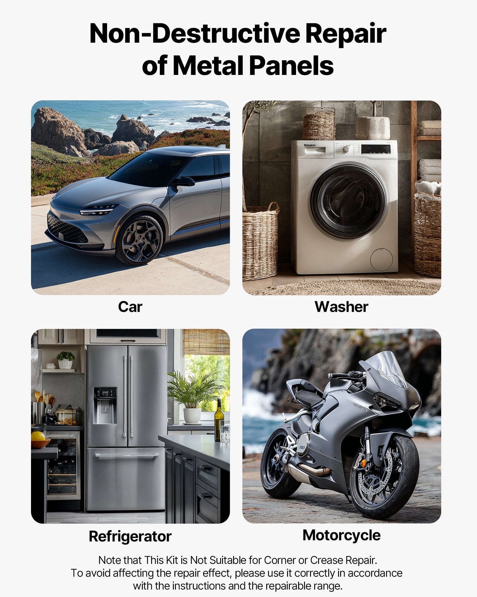 This dent pulling kit isn't just for cars-it also works on metal surfaces like refrigerators, washing machines, and more. Note: Not recommended for vehicles that have been repainted or had prior bodywork