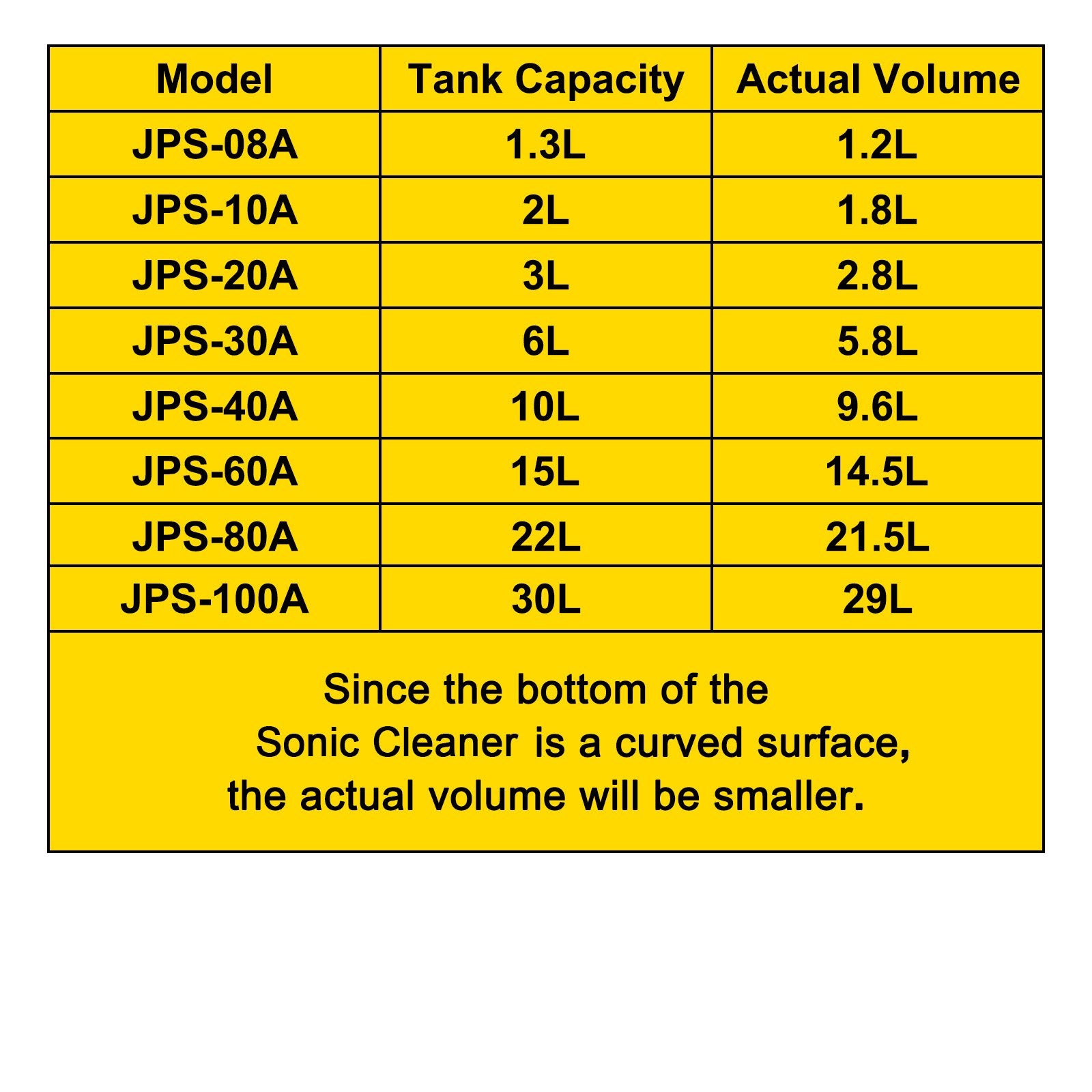 15L/4 Gal; Ultrasonic Power: 360W; Heating Power: 400W. This ultrasonic cleaner machine is constructed with sturdy 304 stainless steel, ensuring no water leakage and long service life. In addition, an extra basket is available to decrease collision between sharp items and the tank.