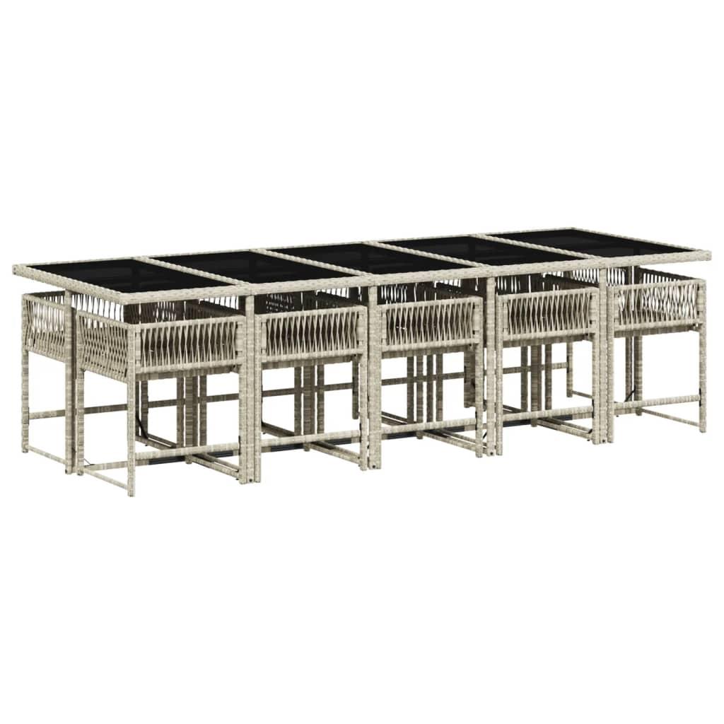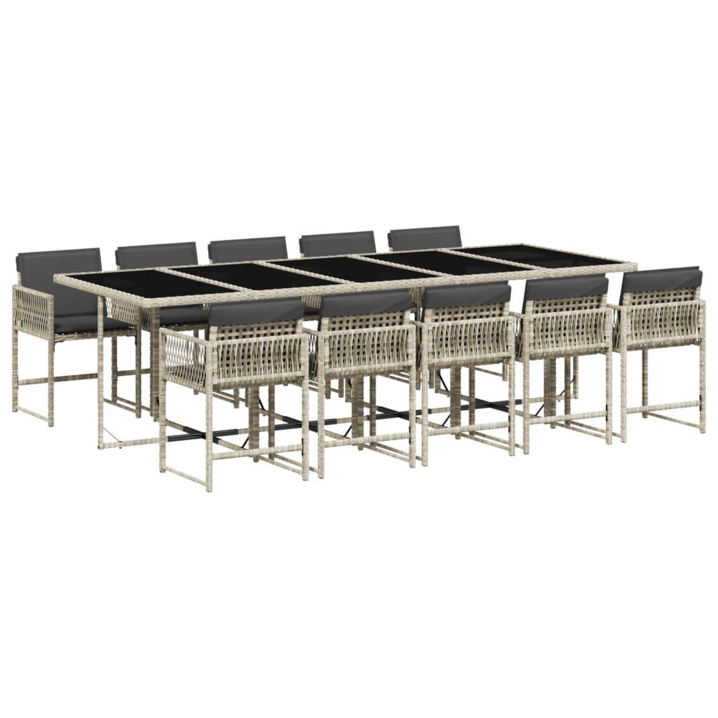 11 Piece Garden Dining Set with Cushions Light Grey Poly Rattan