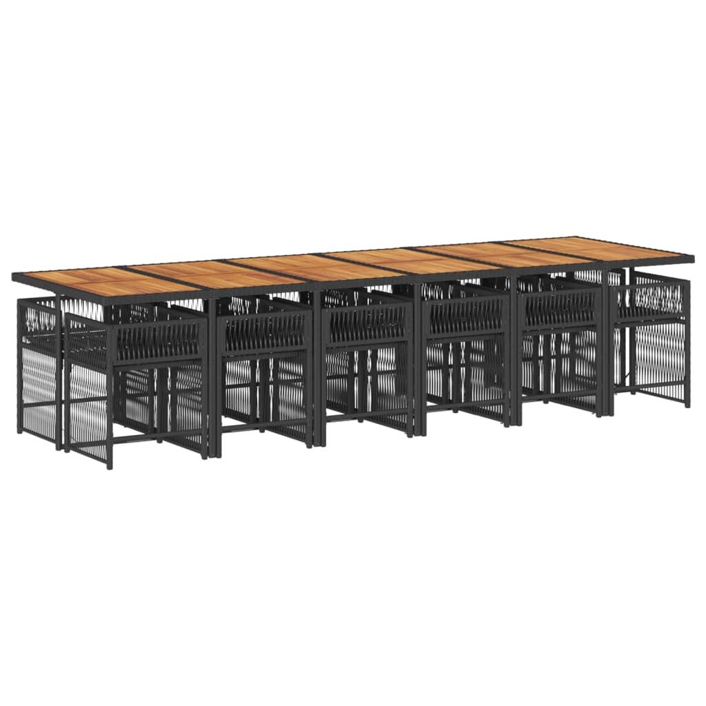 This garden dining set is a great choice for al fresco dining or just relaxing in the garden, backyard, or patio. Durable material: PE rattan, also known as poly rattan, is a strong, low-maintenance synthetic material that looks like natural rattan. It's lightweight, easy to clean, and commonly used for outdoor furniture due to its durability and weather-resistant properties.Compact storage: These chairs have a flap backrest that can be folded down, making it easy to store them under the table. When folded, they neatly fit under the table, forming a space-saving cube shape.Comfortable seat experience: This outdoor furniture, complete with thickly padded cushions, offers a comfortable seating experience.Removable and washable cover: These seat cushions feature removable covers for easy washing and maintenance. The cushion covers have a flap at the back for easy attachment to the backrests.Stable and easy-to-clean tabletop: This garden table has an acacia wood top that is sturdy, durable, and easy to clean with a damp cloth. Good to know:To make sure your outdoor furniture stays beautiful, we recommend protecting it with a waterproof cover.