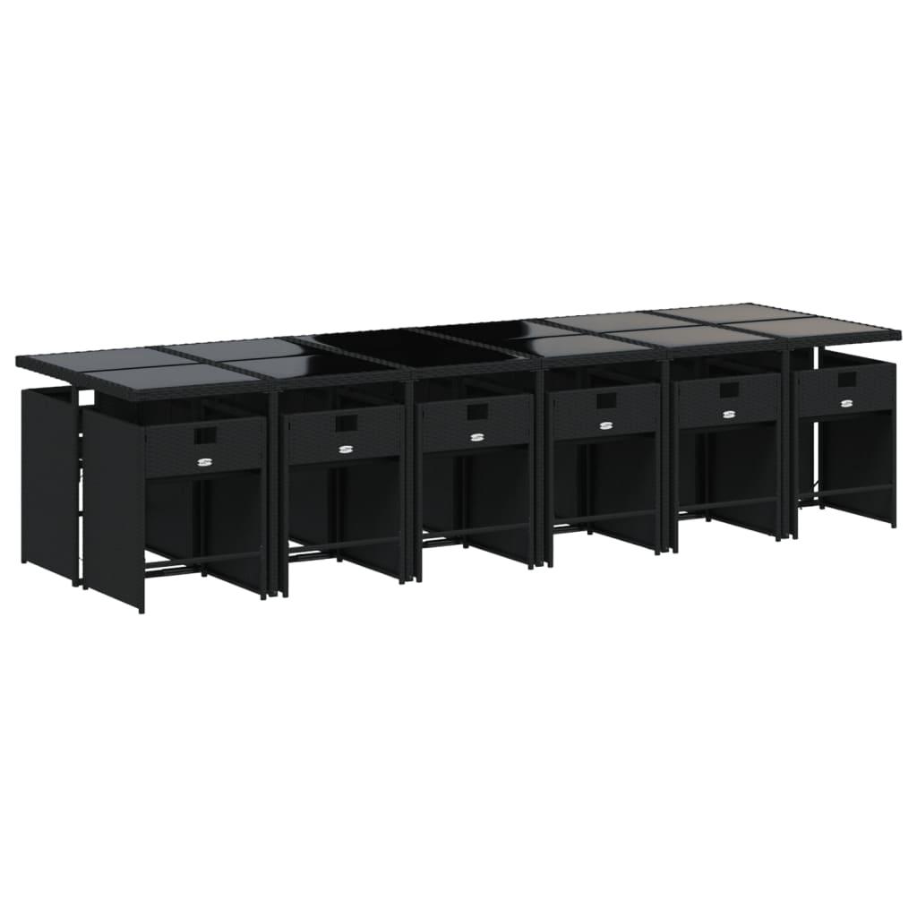 13 Piece Garden Dining Set with Cushions Black Poly Rattan