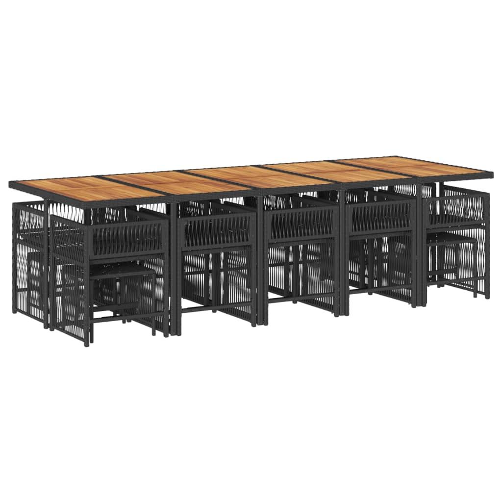 15 Piece Garden Dining Set with Cushions Black Poly Rattan