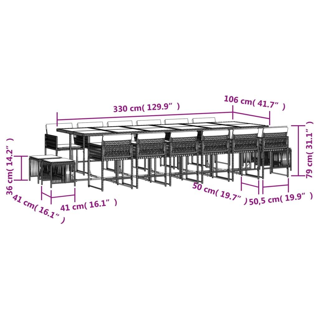 17 Piece Garden Dining Set with Cushions Grey Poly Rattan
