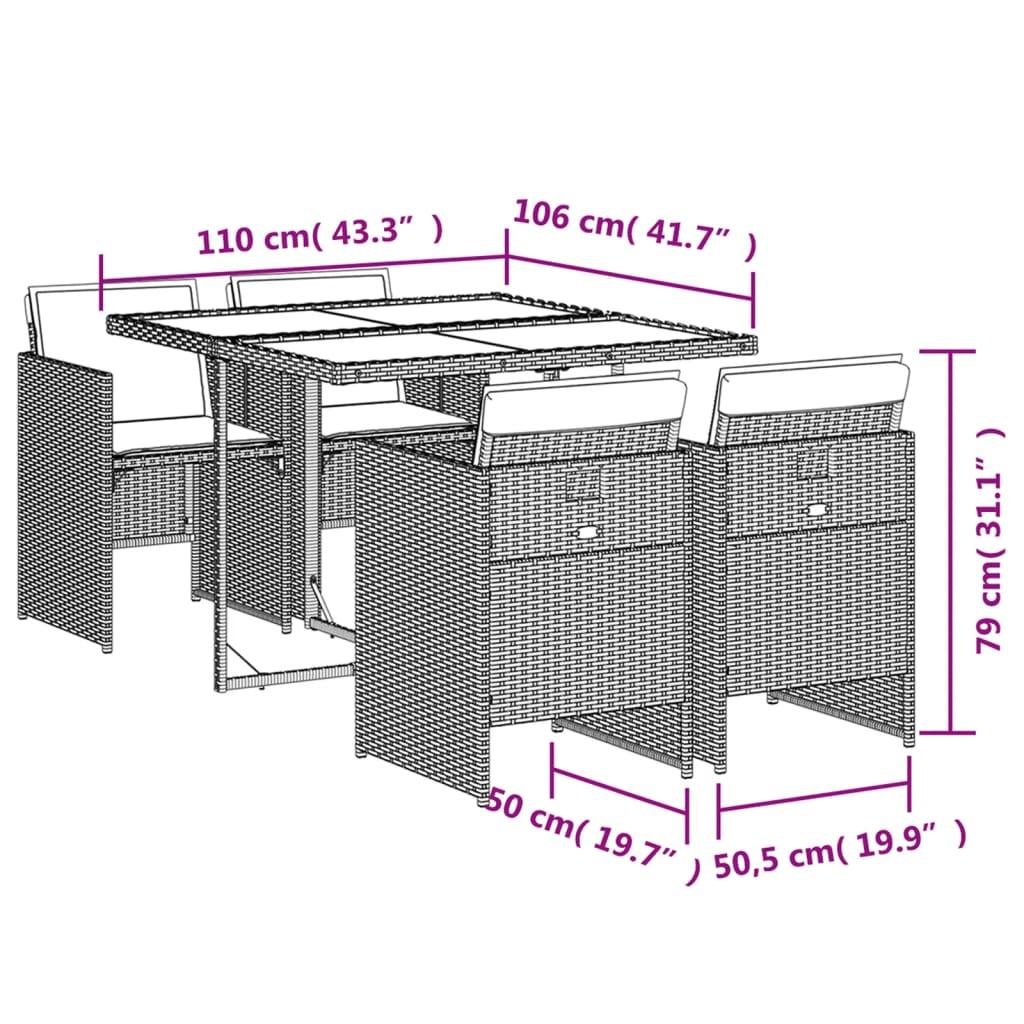 5 Piece Garden Dining Set with Cushions Mix Beige Poly Rattan