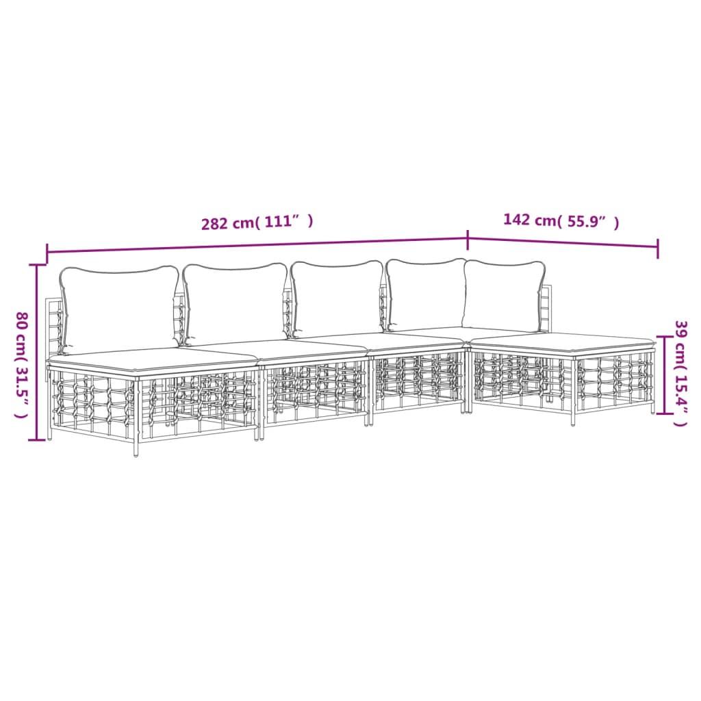 5 Piece Garden Lounge Set with Cushions Anthracite Poly Rattan