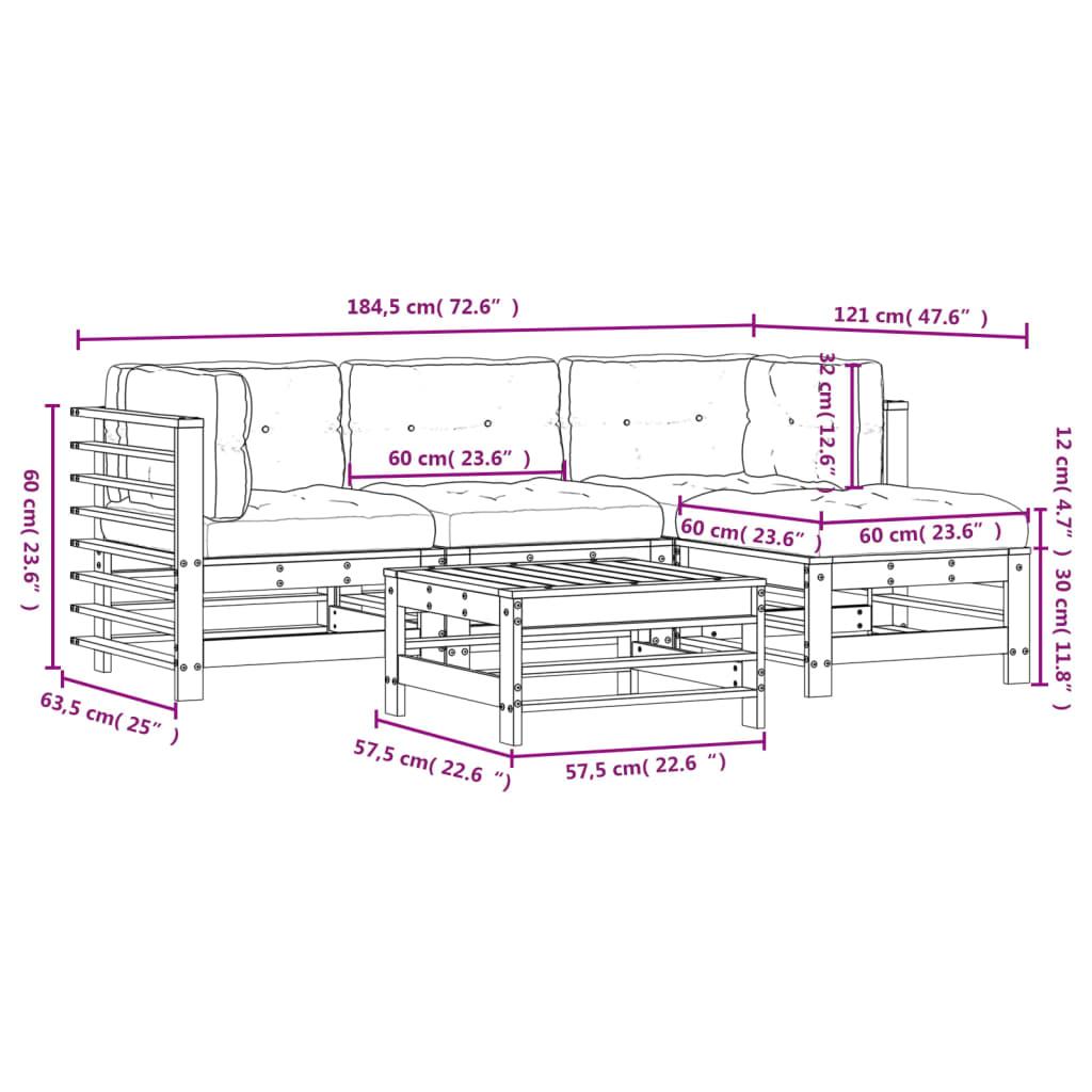 5 Piece Garden Lounge Set with Cushions Solid Wood