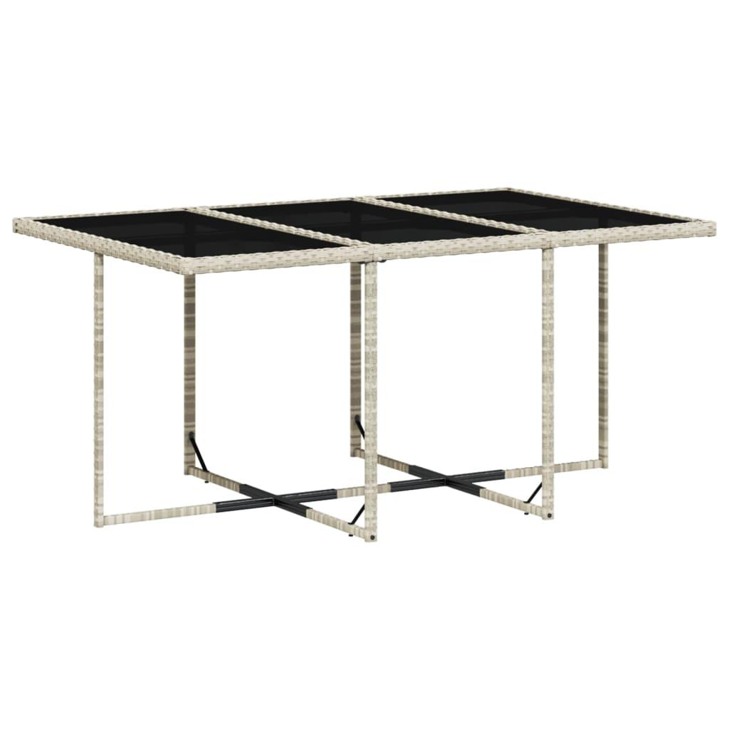 This garden dining set is a great choice for al fresco dining or just relaxing in the garden, backyard, or on the patio. Durable material: PE rattan, also known as poly rattan, is a strong, low-maintenance synthetic material that looks like natural rattan. It's lightweight, easy to clean, and commonly used for outdoor furniture due to its durability and weather-resistant properties.Compact storage: These chairs have a flap backrest that can be folded down, making it easy to store them under the table. When folded, they neatly fit under the table, forming a space-saving cube shape.Comfortable seat experience: This outdoor furniture, complete with thickly padded cushions, offers a comfortable seating experience.Removable and washable cover: These seat cushions feature removable covers for easy washing and maintenance. The cushion covers have a flap at the back for easy attachment to the backrests.Glass tabletop: The outdoor table's top is made from strong and durable tempered glass, making it easy to clean with a damp cloth and adding a touch of elegance to your outdoor space. Good to know:To make sure your outdoor furniture stays beautiful, we recommend protecting it with a waterproof cover.