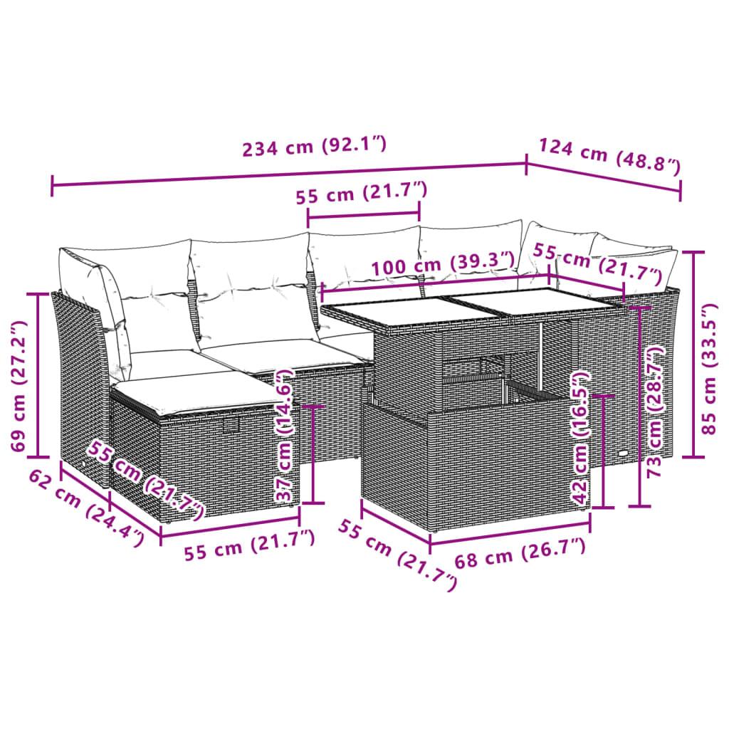 7 Piece Garden Sofa Set with Cushions Black Poly Rattan