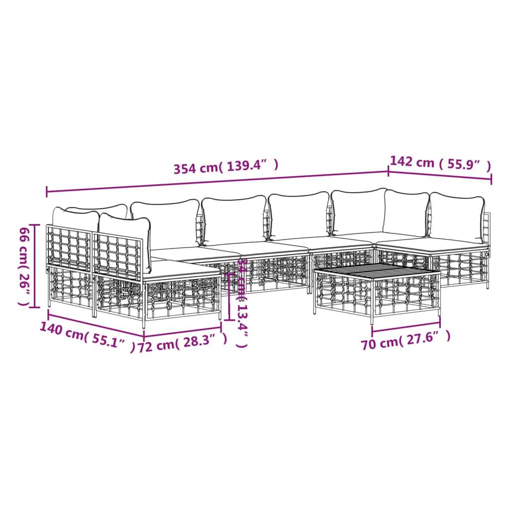 8 Piece Garden Lounge Set with Cushions Anthracite Poly Rattan