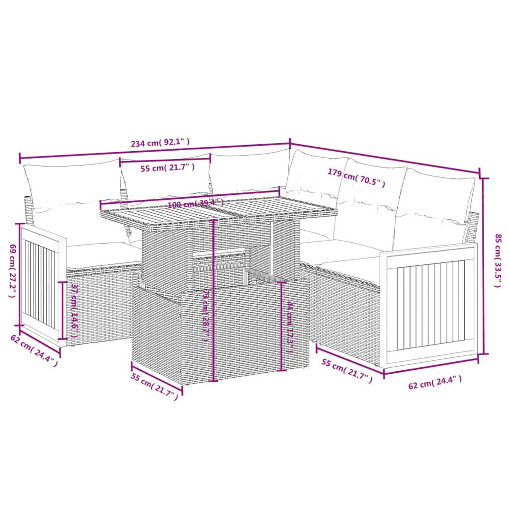 6 Piece Garden Sofa Set with Cushions Beige Poly Rattan