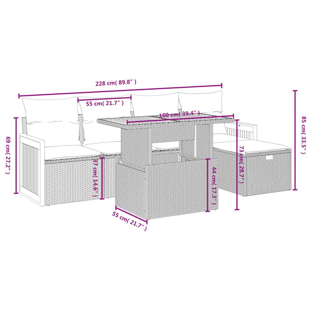 6 Piece Garden Sofa Set with Cushions Black Poly Rattan