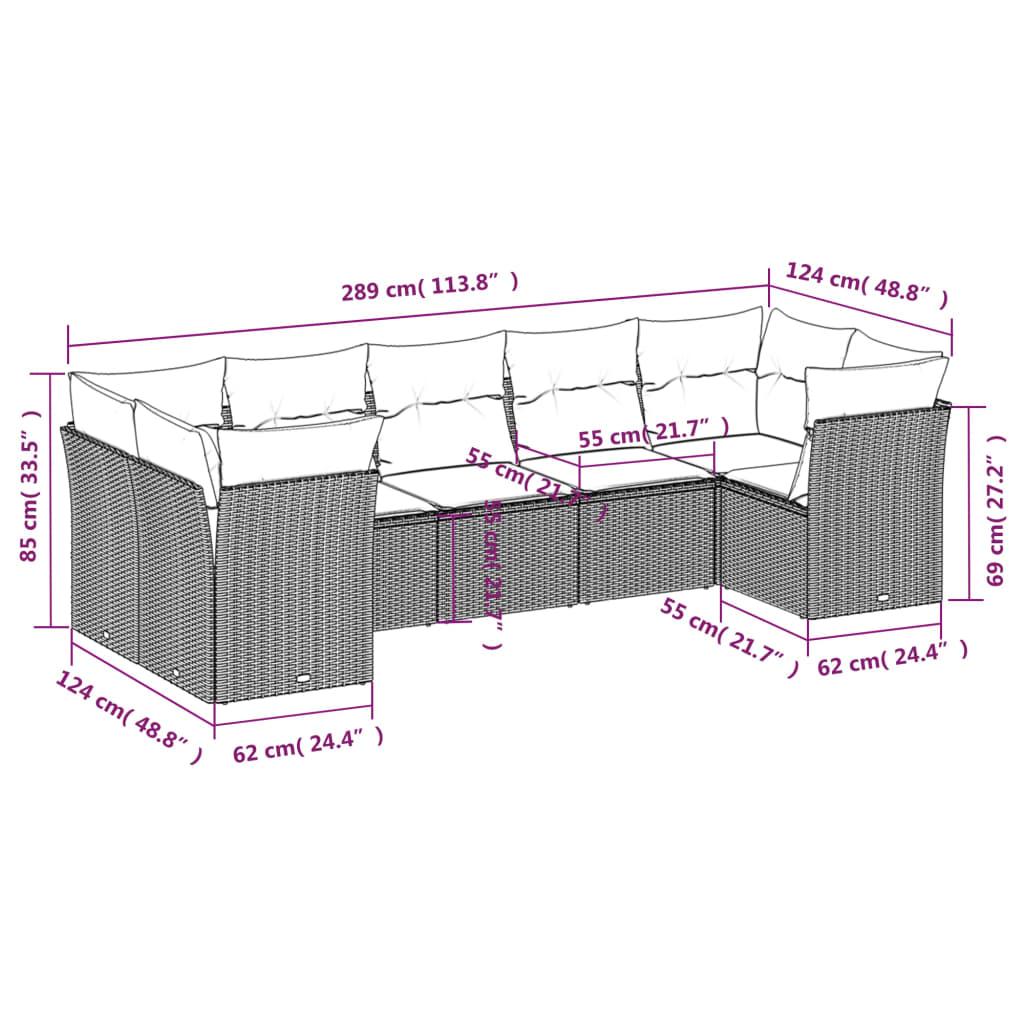 7 Piece Garden Sofa Set with Cushions Beige Poly Rattan