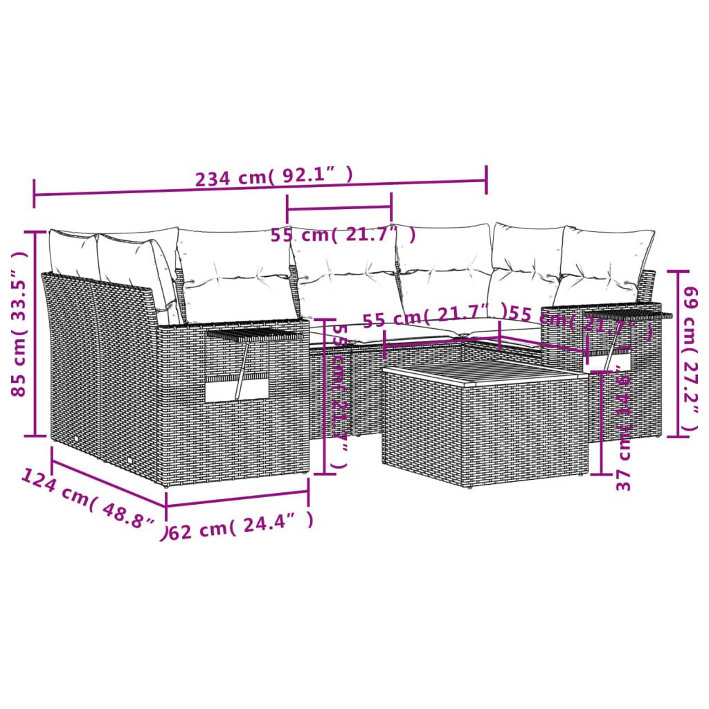 7 Piece Garden Sofa Set with Cushions Black Poly Rattan