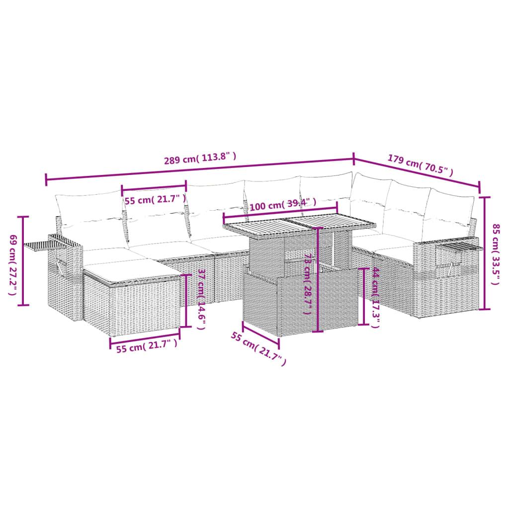 9 Piece Garden Sofa Set with Cushions Grey Poly Rattan
