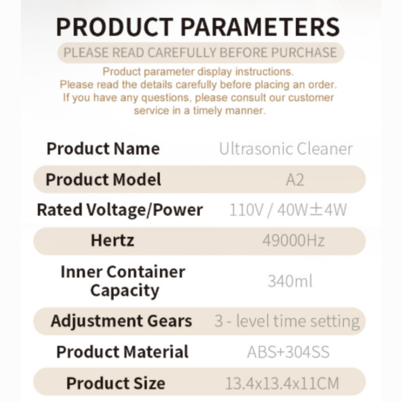 • Three Preset Timer Modes: Offers 3 adjustable cleaning cycles (3, 5, and 10 minutes) to customize cleaning intensity for various items.