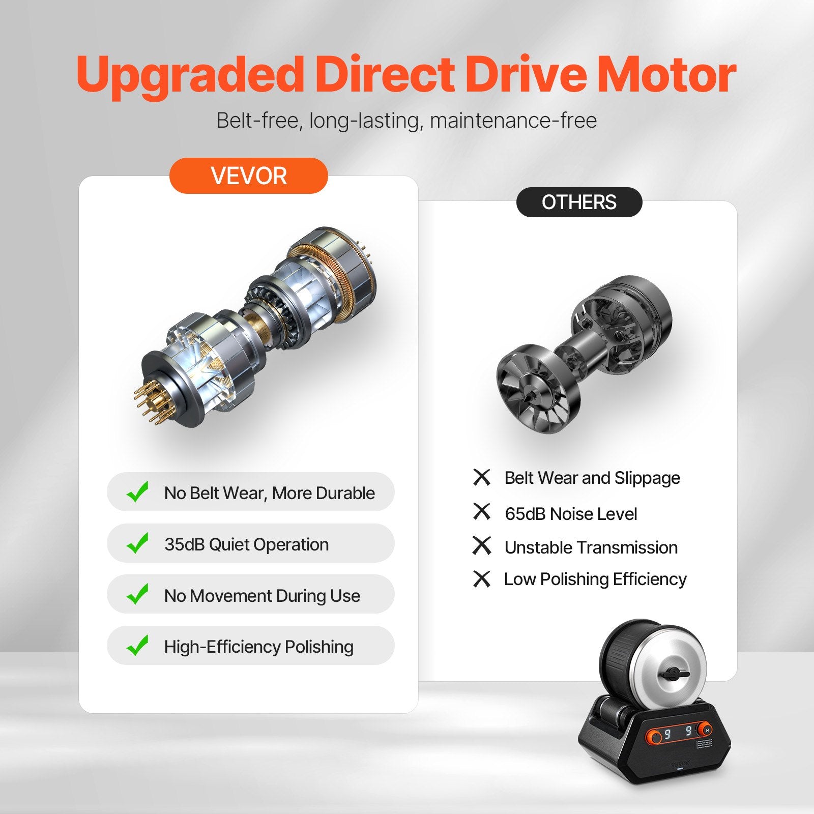 No more worries about broken belts! The direct-drive motor delivers efficient power with 35dB silent operation. The rock tumbler kit runs cool even after extended use, ensuring a longer lifespan for endless rock-tumbling fun.