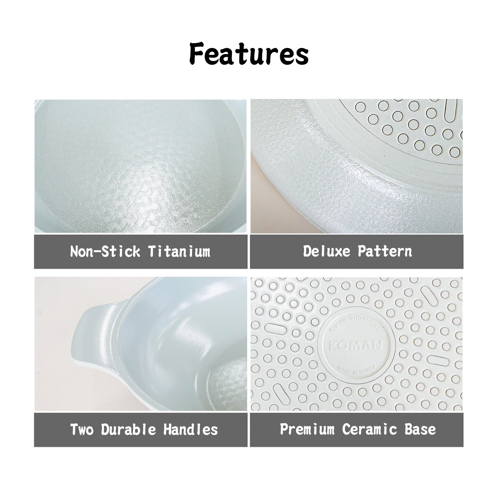 Internal and external 6 layers coating - Reinforced with a strong and robust titanium coating for heavy non-stick black coating, reducing the frictional force of the coating surface for excellent coating and cleaning power. The release of the raw infrared radiation gives the deep flavor of the dish.