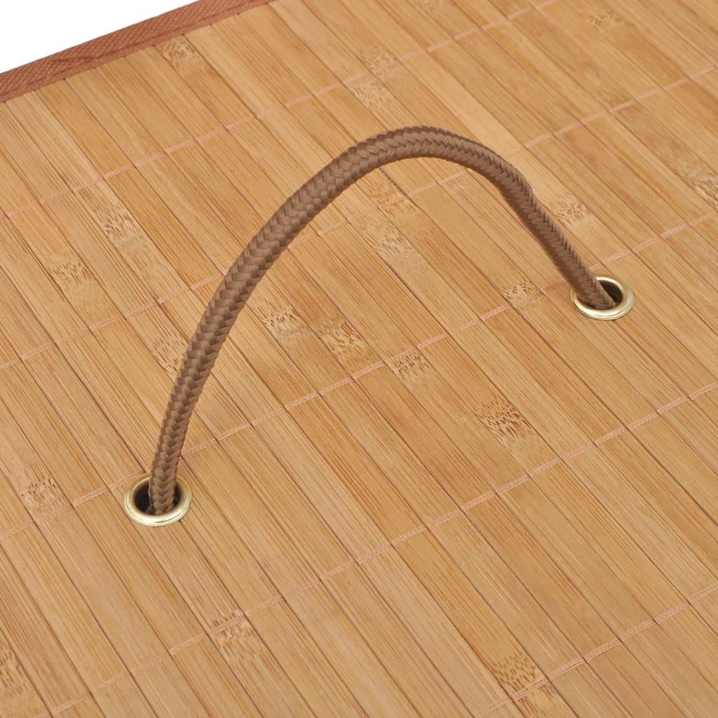 Our bamboo laundry bin is an ideal solution for any household. It keeps your dirty laundry out of sight and makes a decorative addition to your decor at the same time. The inside liner is made of a woven polyester fabric, which does not absorb moisture or odours. It is also removable so you can conveniently transport your laundry to the machine. The basket is equipped with handles so it can be easily moved around. This bamboo laundry hamper can be dismantled and folded up when not in use. This multifunctional hamper can also be used for storing children’s toys.