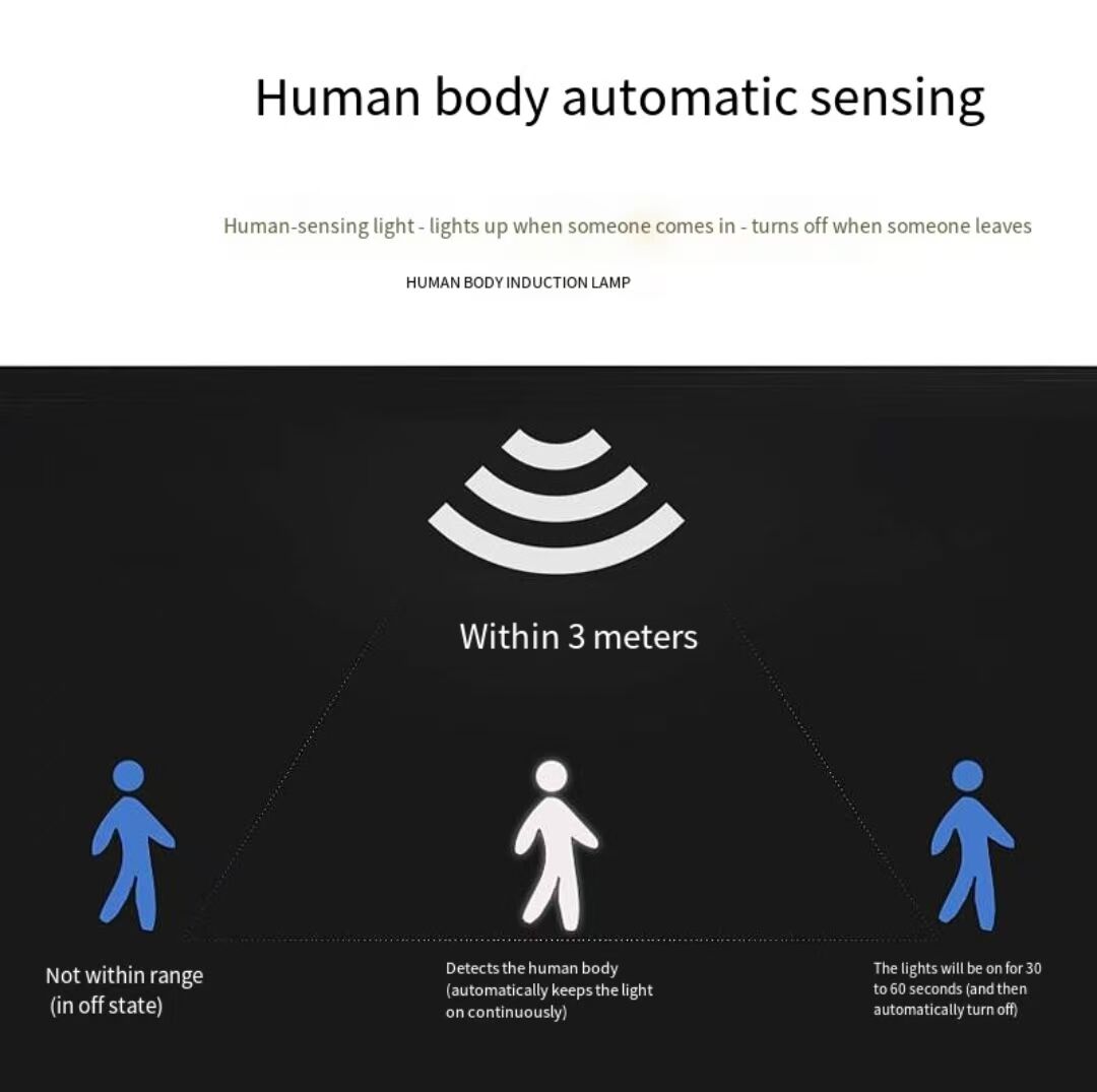 ✔ Intelligent light sense + human body sense--automatic lighting when moving is detected in dark environment