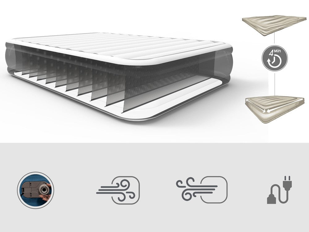 Built-in 220-240V~ AC pump inflates the bed in 4 minutes