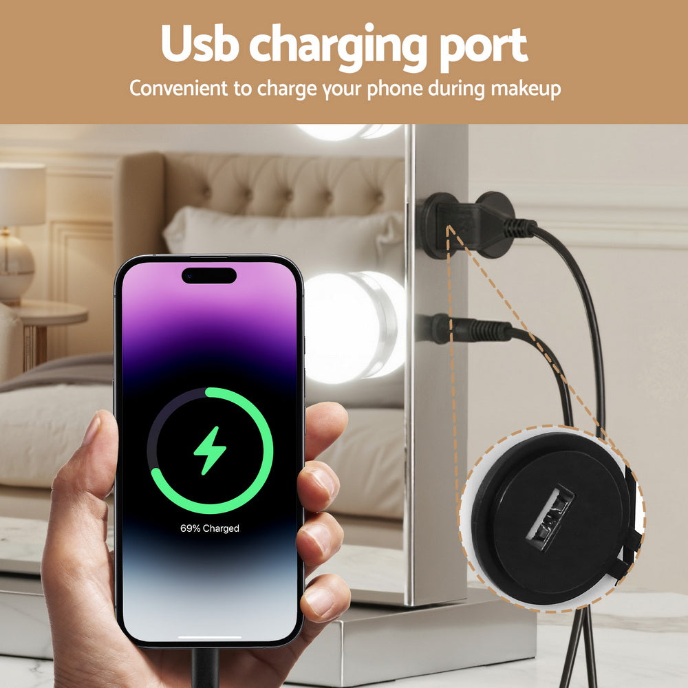 Get the star treatment with our gorgeous Embellir Make-up Mirror. Framed with 15 LED bulbs, this mirror really lights up your visage through your daily makeup regimen. The aluminium frame is sturdy, lightweight, and adds a touch of glamour to the entire mirror. The frame sits on an equally smooth powder-coated MDF base for stability and durability. Best of all, the built in Bluetooth speaker allows you to listen to your favourite audiobooks, music and podcasts as you go. Even more wonderful is that the LED light can be easily adjusted for brightness and colour temperature using our intelligent touch controls. Turn your bedroom or bathroom into a celebrity set overnight with our Embiller Make-up Mirror, and enjoy beauty in all its illuminated brilliance.