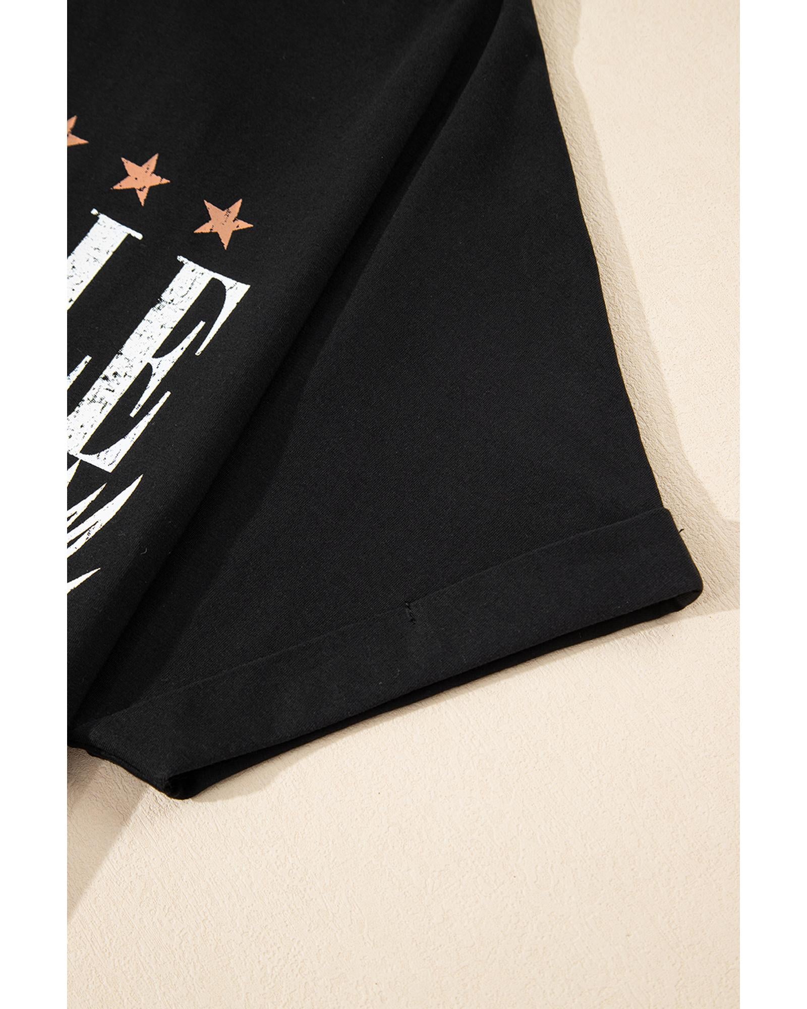 • Black Nashville Guitar Print Crew Neck T