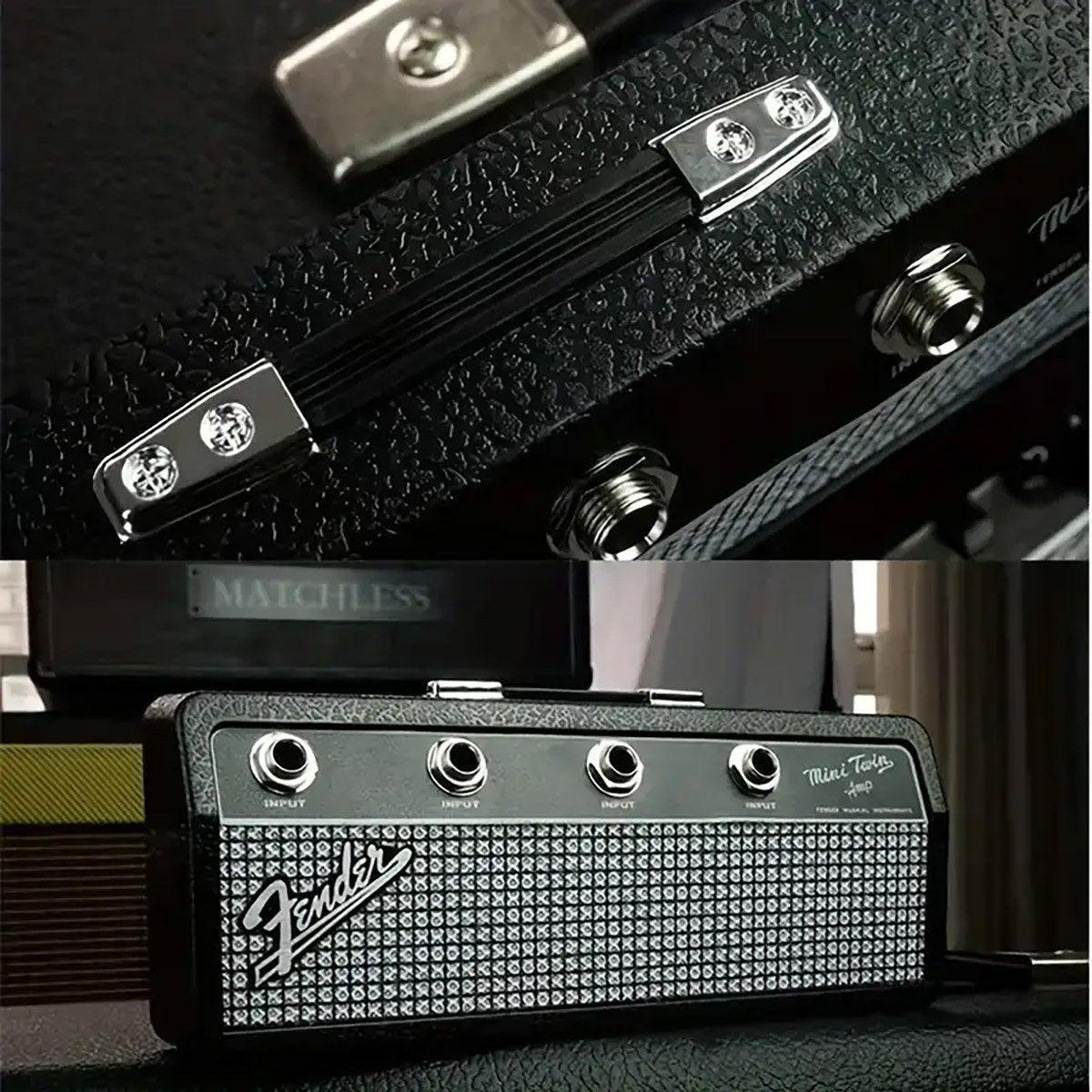 Add a touch of rock-and-roll flair to your home with this innovative wall-mounted key organiser. Designed to look like a mini guitar amplifier, this unique storage solution holds your keys in place with guitar plug keychains that fit perfectly into the amp-style jacks. Perfect for music lovers and anyone looking to add functionality and personality to their living space.