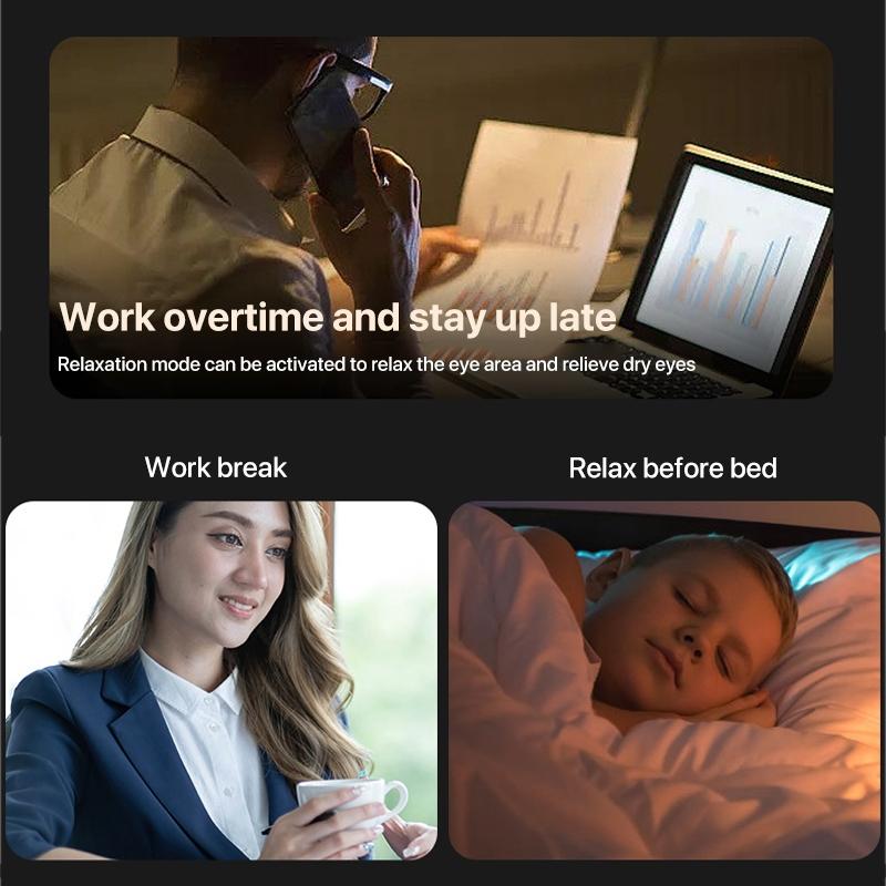 • Air pressure and hot compress massage for relieving eye and temple soreness