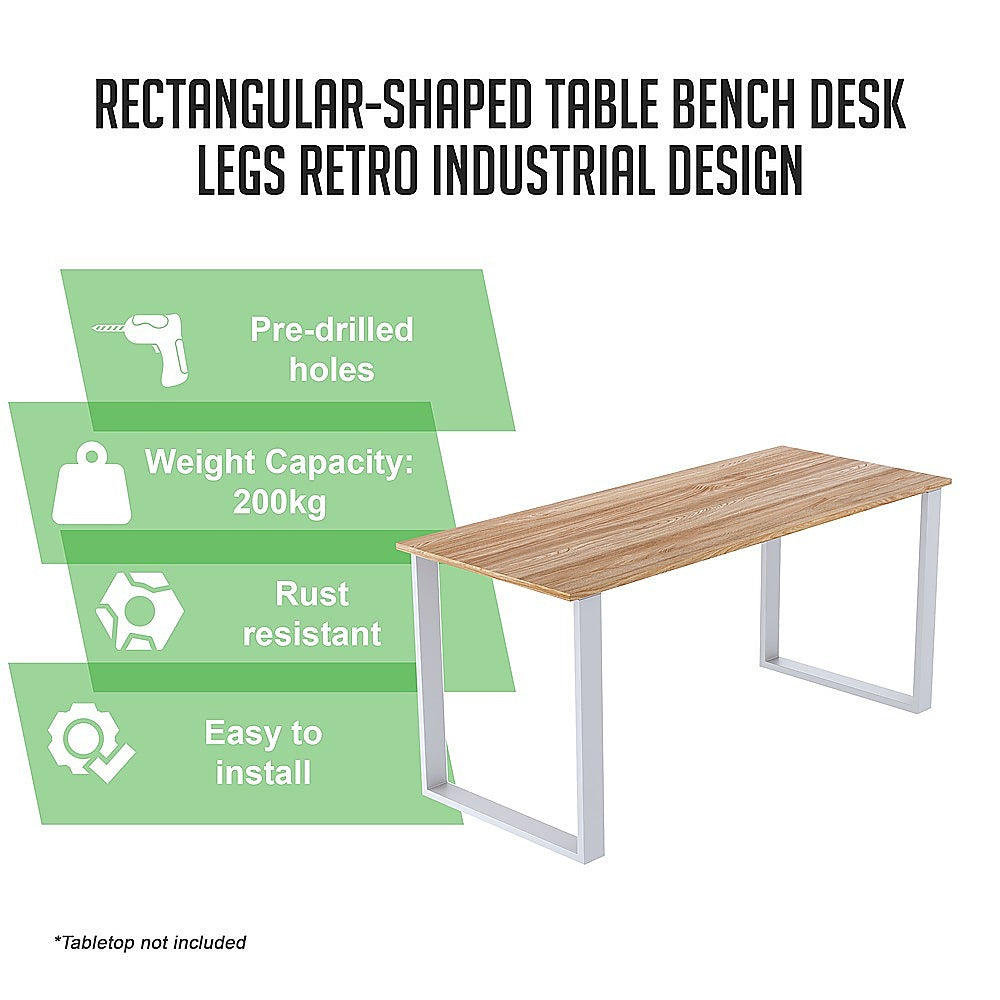 1x Rectangular Shaped Table Bench Desk Legs Retro Industrial Design Fully Welded - White