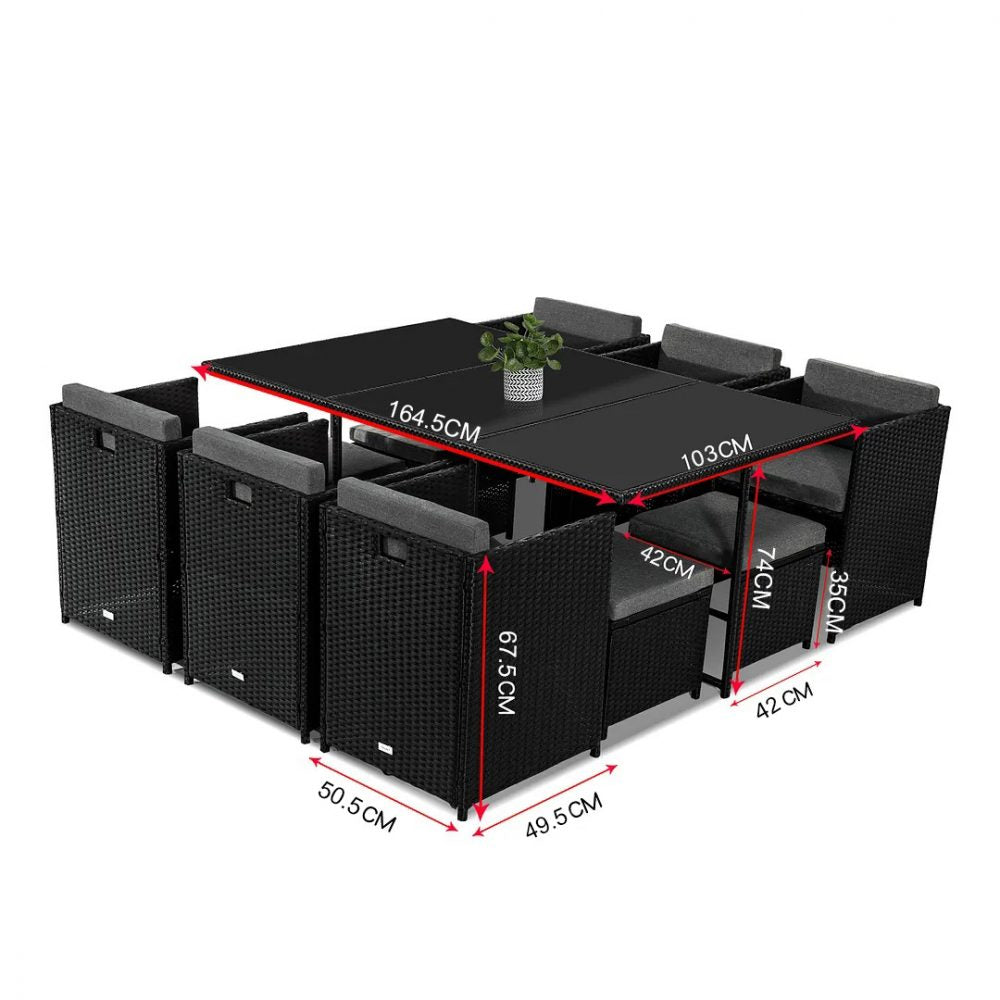 Make your garden or patio the heart and soul of your social circle with this super chic outdoor dining set. Accommodating up to ten people, the stylish rattan pieces included in the product offering represent the perfect accompaniment to any evening soiree or summer BBQ. Thanks to its neutral colours and contemporary design, this set is sure to enhance the appearance of almost any outdoor space. What’s more, its durability and hardy materials mean that it will stay looking fantastic in the face of adverse weather.